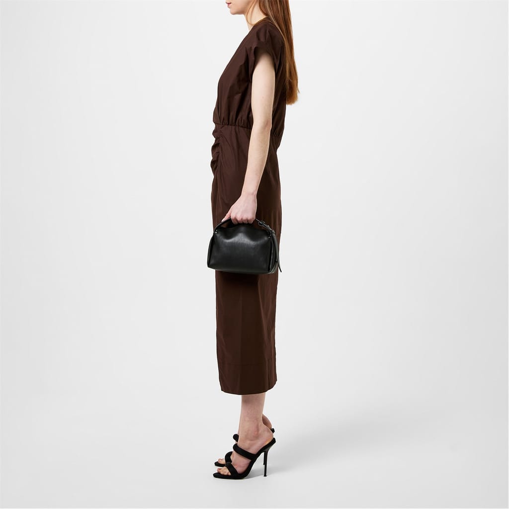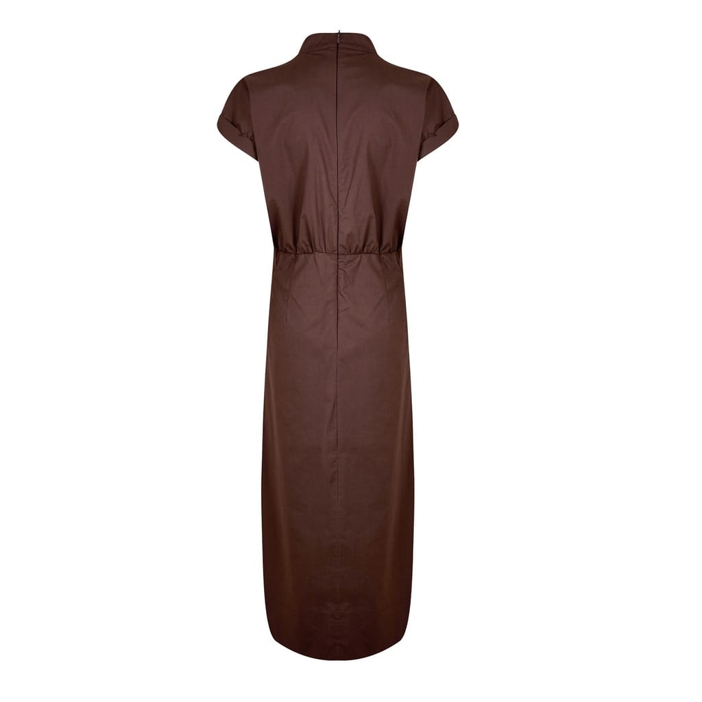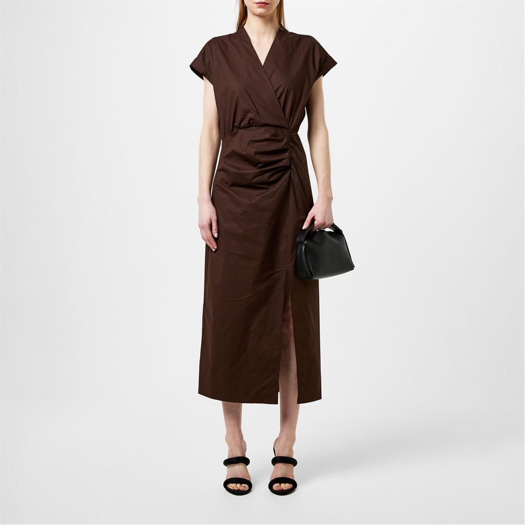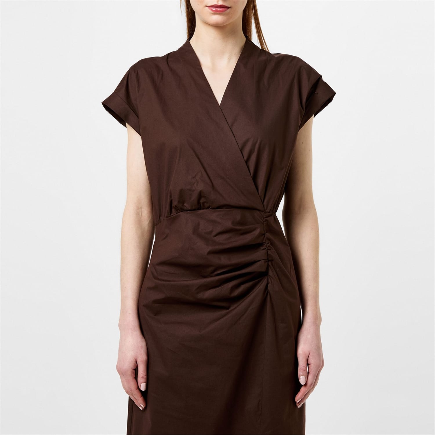 Elevate your wardrobe with this Marella midi dress. Featuring a flattering V-neckline and cap sleeves, this wrap-style dress offers a regular fit and a straight hem. The solid pattern and ruched details add a touch of elegance. Complete with a convenient zipper closure, this dress is perfect for any occasion. -