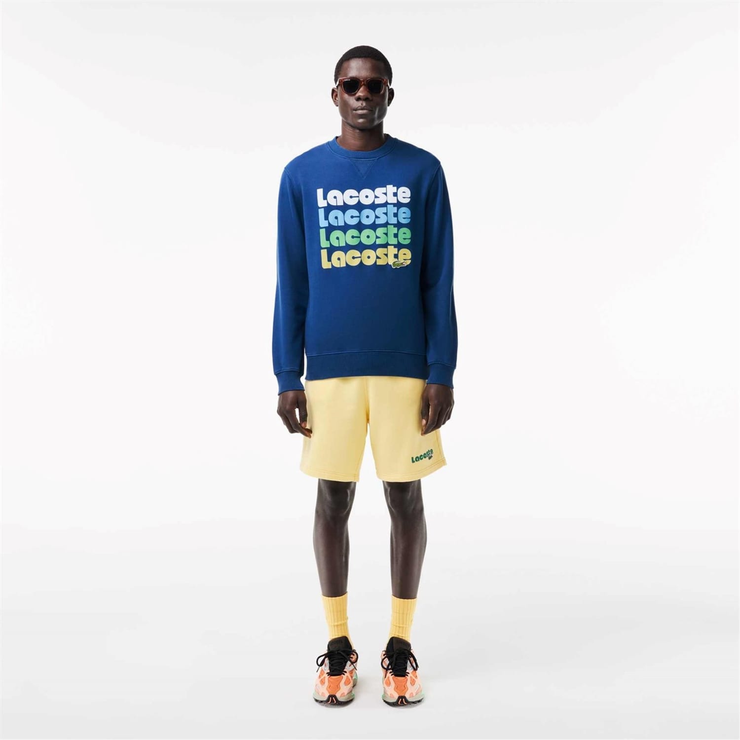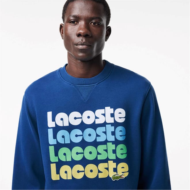 - Designed in a navy hue, coupled with multicoloured Lacoste prints in a unique washed ombre effect adding an eye-catching visual appeal. Completing the look is the embroidered crocodile on the front, which symbolises both quality and authenticity. Whether you are lounging at home or meeting up with friends, the Lacoste Ombre Print Sweatshirt is the perfect piece to elevate your look. Pair with jogging bottoms for a casual appeal or with jeans for a relaxed ensemble.
