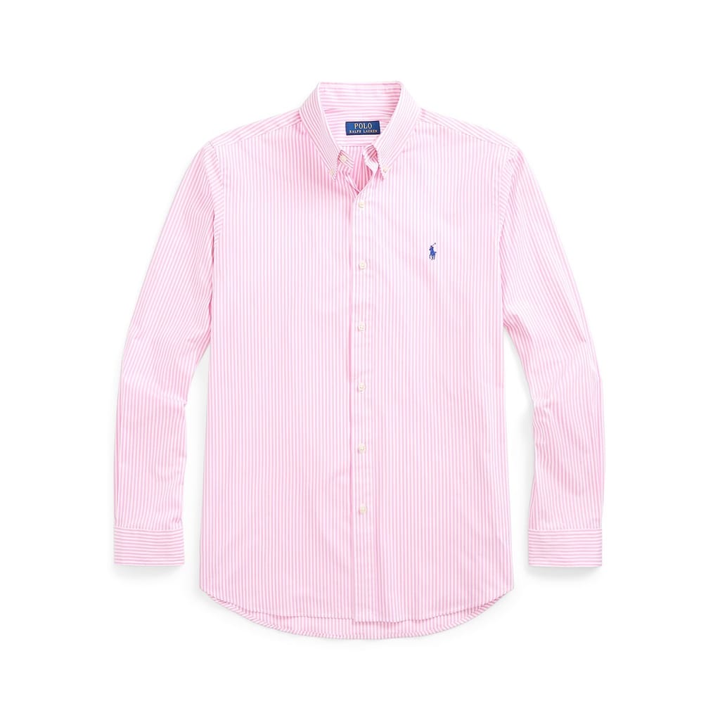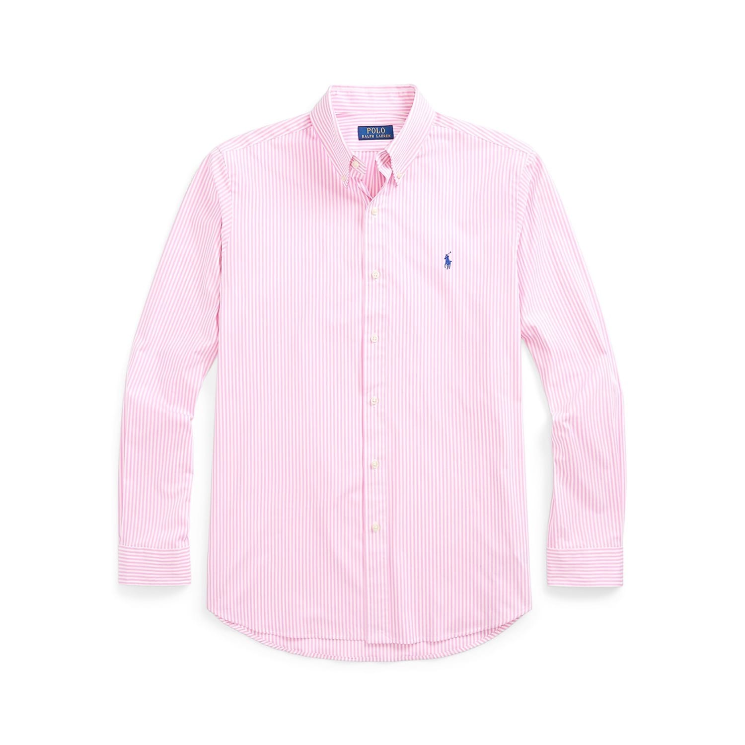 - Designed in pink and white with a striped pattern featuring the signature embroidered Pony at the left chest adding an authentic touch. From business meetings to formal soirees, the Polo Ralph Lauren Slim Fit Poplin Shirt is the perfect companion. Pair with shorts or linen trousers for a complete summer ensemble.