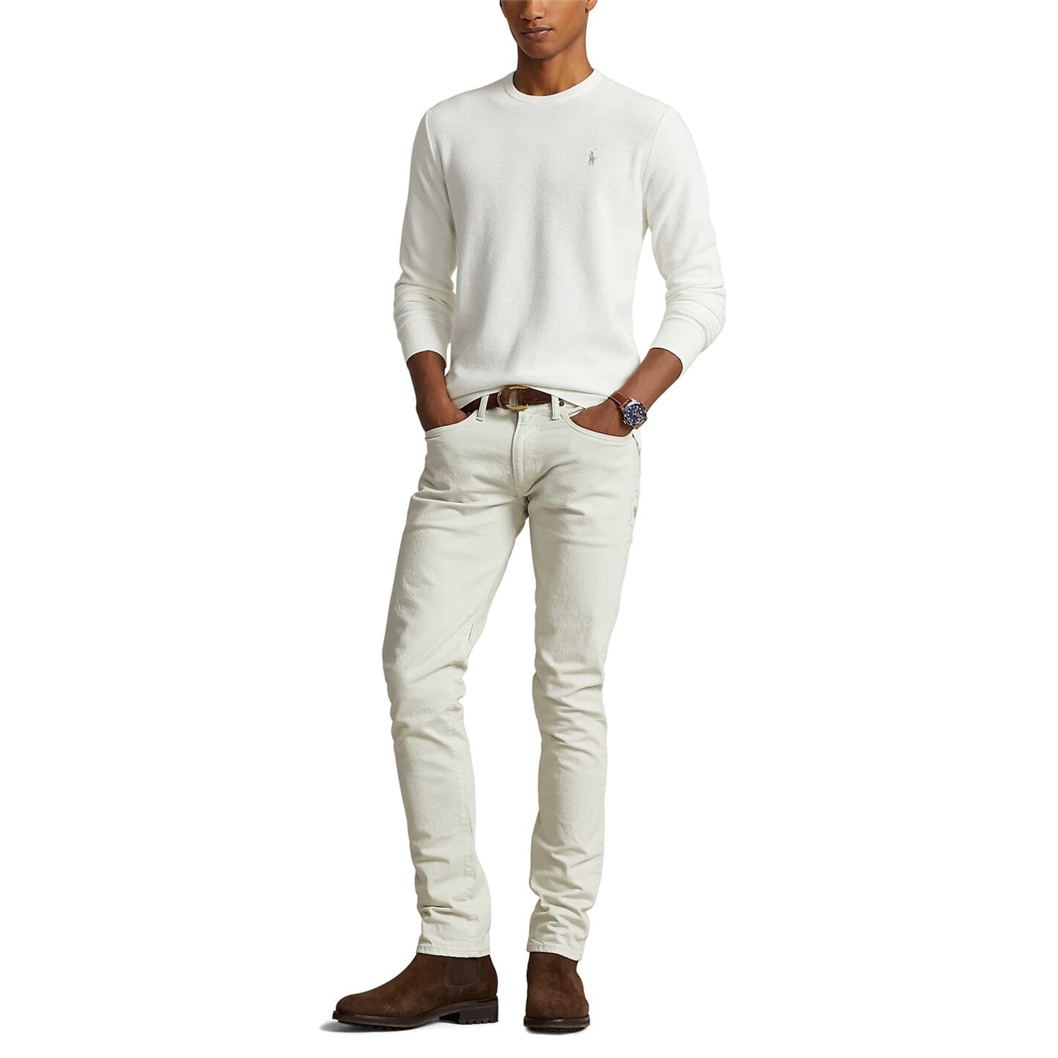 Celebrated for its fusion of New England rustic charm, sporting motifs, and Hollywood glamour, Polo Ralph Lauren's instantly recognisable designs have been a staple of countless wardrobes for almost sixty years. This Textured Pony Jumper is the perfect example of the brand's charming spirit, expertly crafted in a premium textured cotton composition. This timeless piece showcases a classic crew neck framed by full-length sleeves. Ribbed trims and a straight hem complete the construction, and tone-on-tone stitching marries the pieces into a sophisticated and cohesive look. Solid block colouring provides an excellent foundation to style this piece into any smart-casual ensemble, and no Polo Ralph Lauren design is complete without a contrasting embroidered Pony motif on the chest to ensure instant brand recognition and a premium allure. Machine washable at 30 degrees: Always refer to and follow garment labelling for complete instructions.