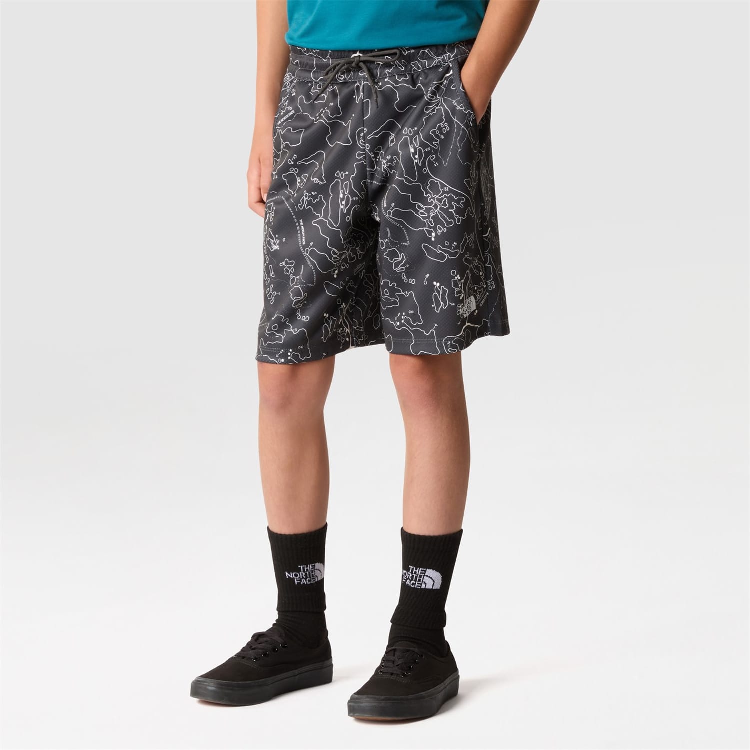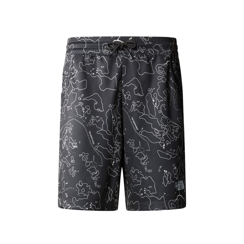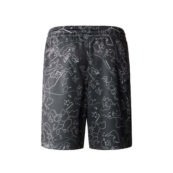The North Face athletic shorts are perfect for active days. Featuring a drawstring closure for a secure fit, these shorts are designed with a stylish graphic print and a prominent logo embellishment. Ideal for those who value both functionality and fashion in their athletic wear. -