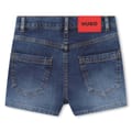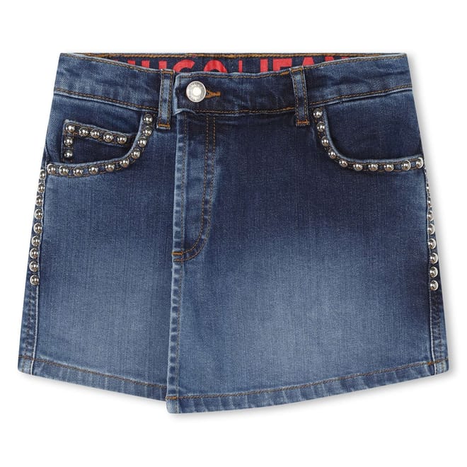 - Vibrant in denim blue, a red rubber logo label adorns the back providing a distinctive touch. From casual rendezvous to summer garden parties, the Hugo Denim Skort is the perfect piece to elevate your mini-me's style.