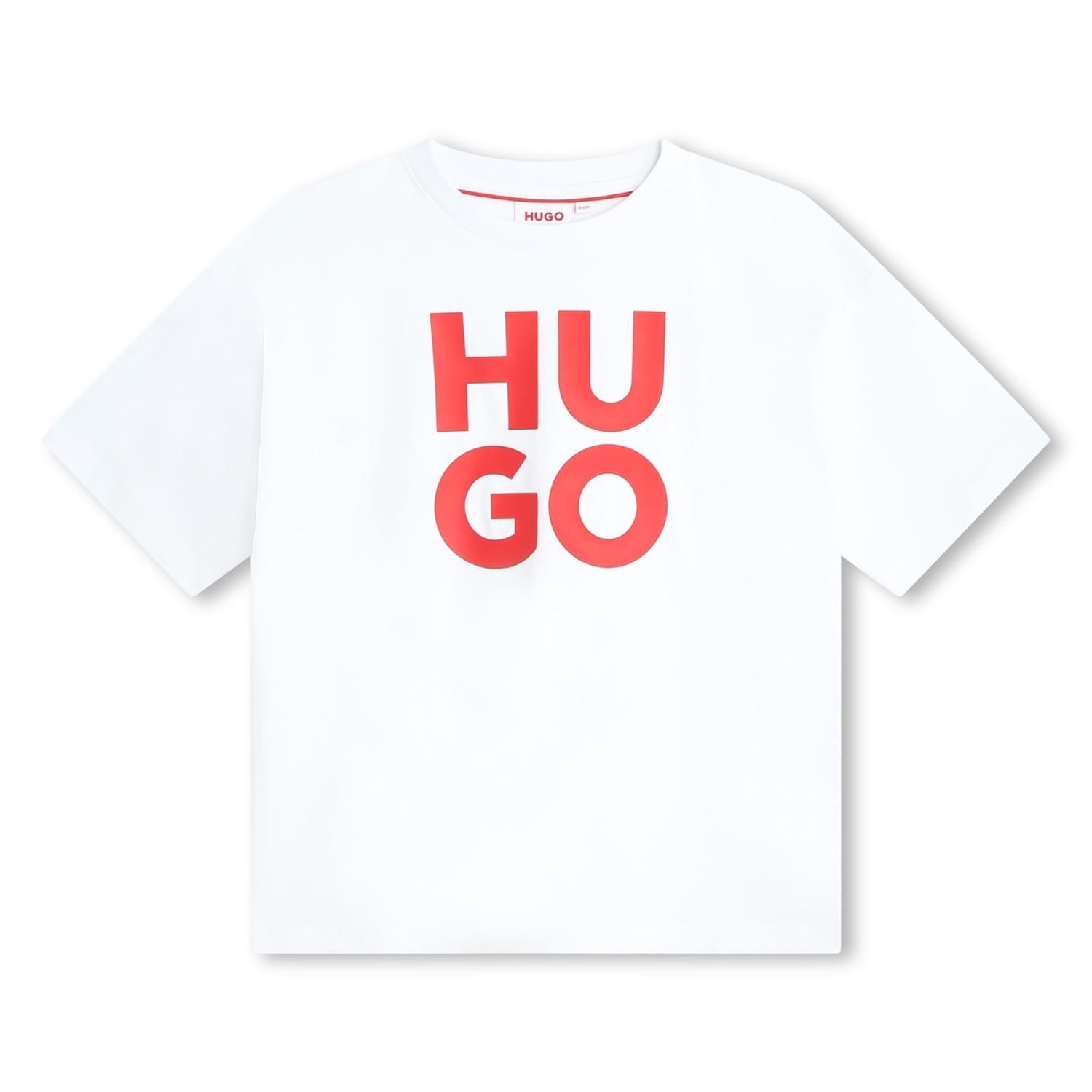 - Designed with a classic colour palette, this cotton t-shirt's versatile style guarantees it will remain a staple in any wardrobe season after season. Whether worn casually for playdates or dressed up for a special occasion family gathering, the Hugo Short Sleeved Cotton T-Shirt is the ideal canvas to create an instantly elevated outfit.