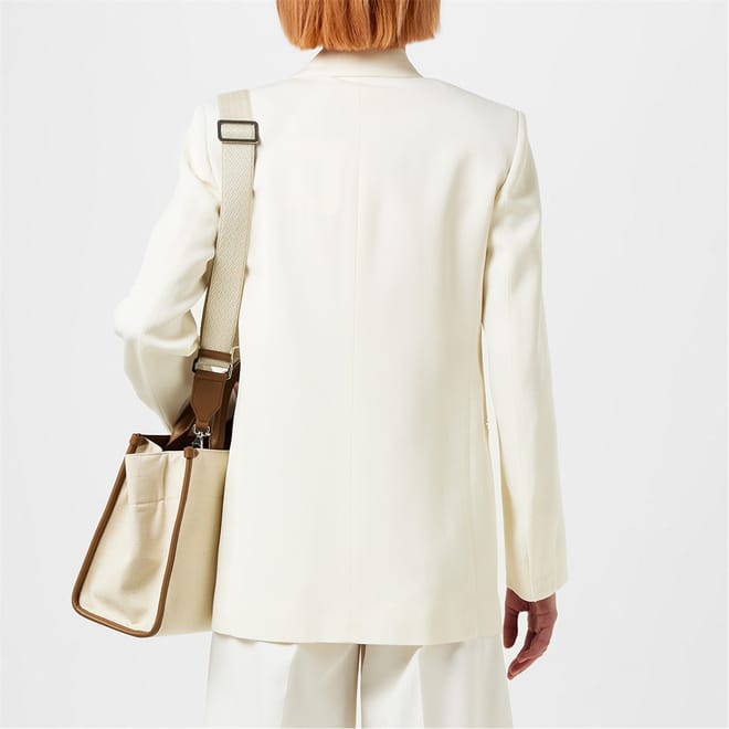 At the heart of Lanvin beats the rhythm of elegance and exclusivity, showcased in their timeless creation—the Double Breasted Tailored Jacket. This exquisite piece features a silk-blend couture fabric that drapes effortlessly, embodying a refined statement of luxury.