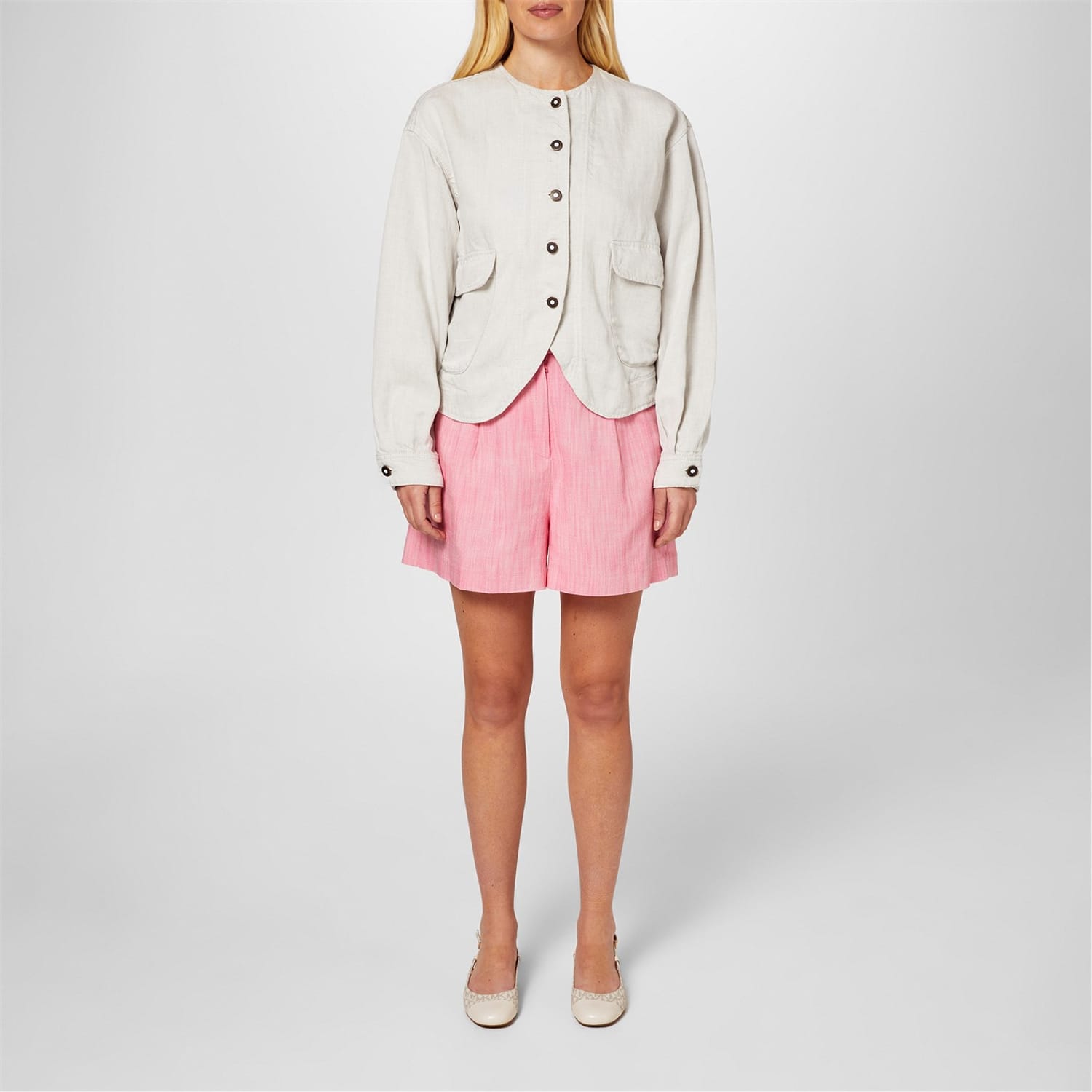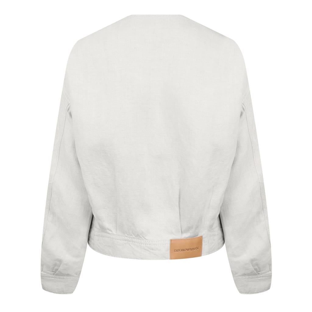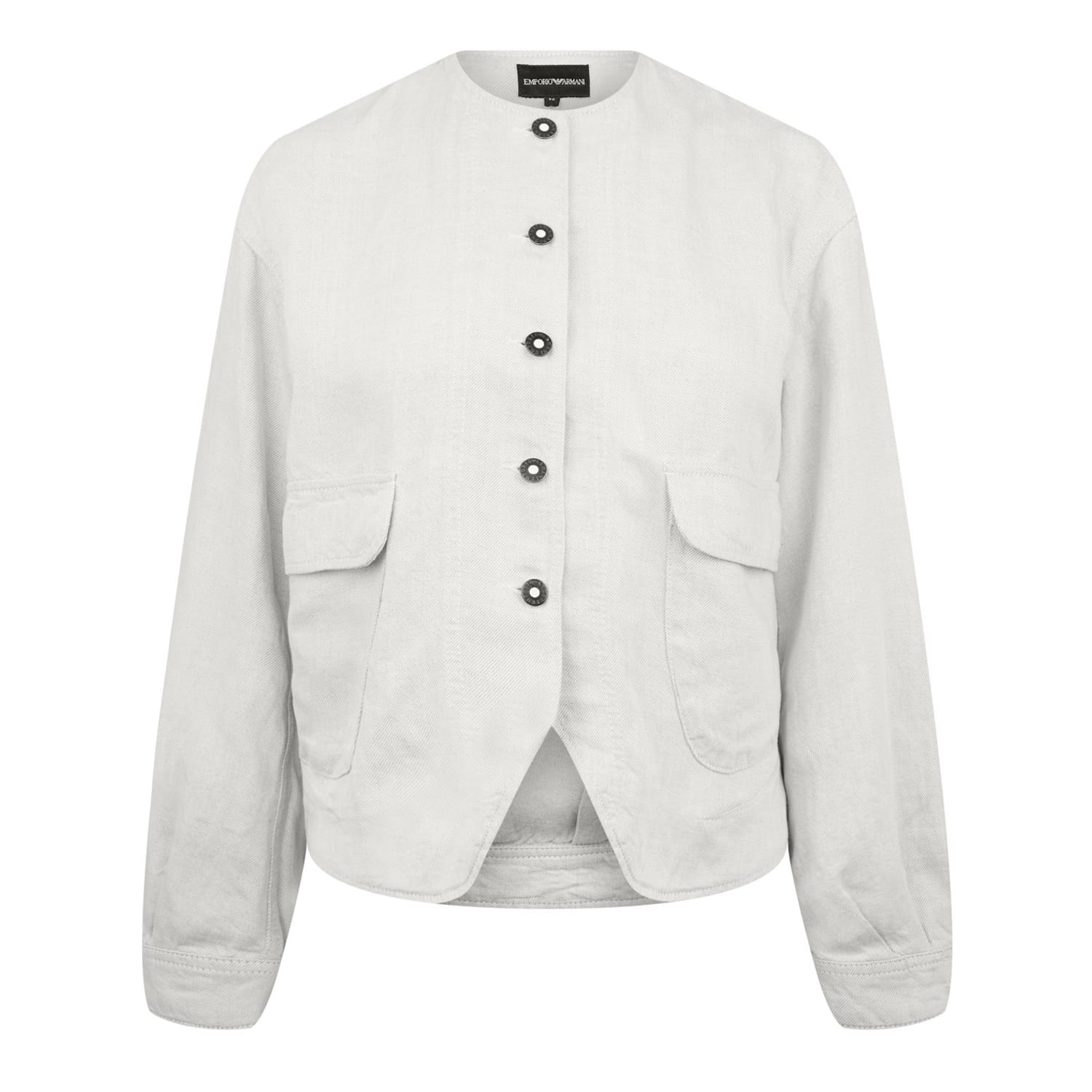 The Emporio Armani EA7 blazer jacket from the Workwear and Outerwear collections presents a relaxed fit with a crew neck and snap button closure. This solid pattern short-length jacket exemplifies modern sophistication, making it an ideal choice for a professional setting. -