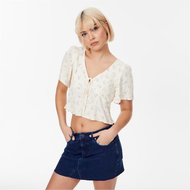 - Cut with a tied v-neckline, a timeless and flattering silhouette is ensured, making this shirt versatile enough for both daytime and evening occasions. Plus with its crop length, this blouse is perfect for warmer days, whether it's a picnic in the park or a fun outing with friends - ensuring it remains a mainstay summer staple in your wardrobe. 100% viscose. Always follow care instructions. -