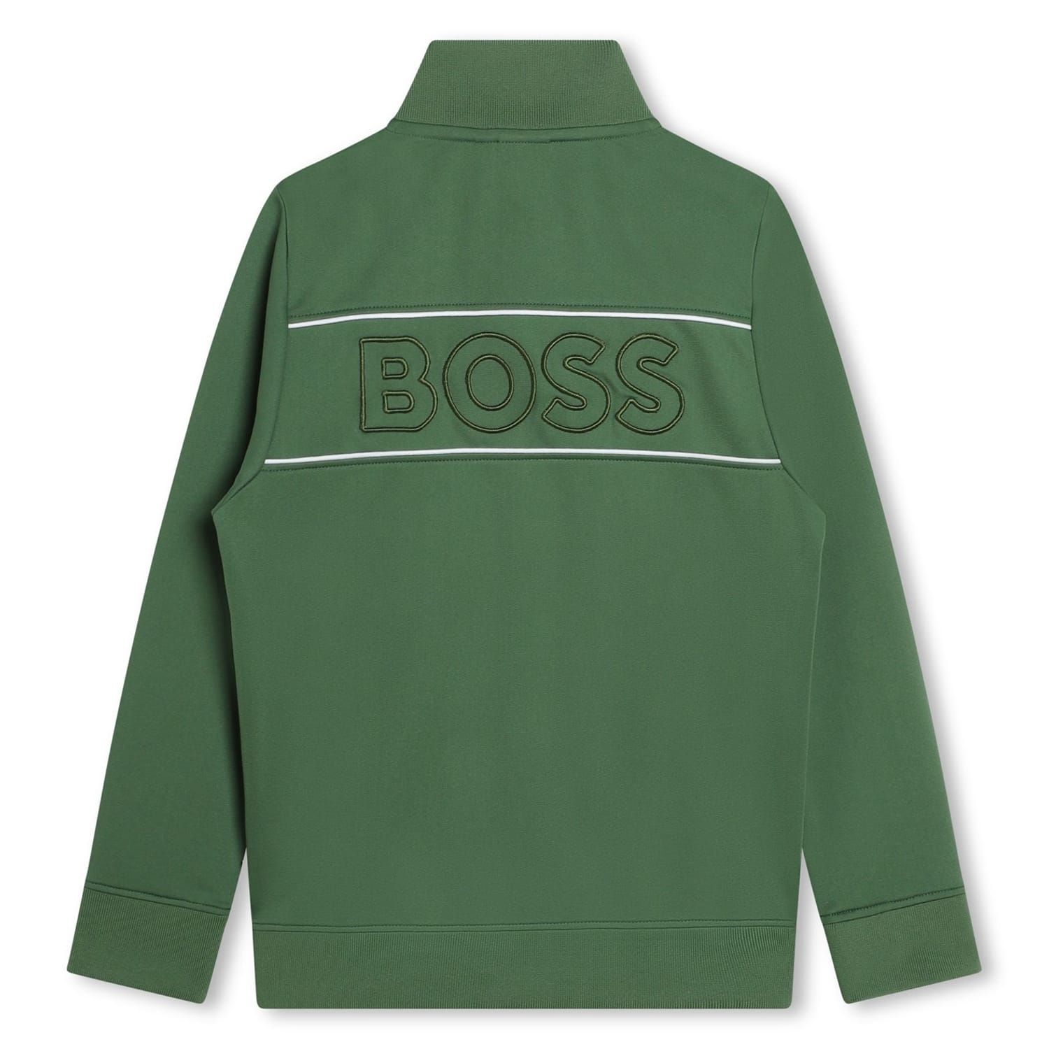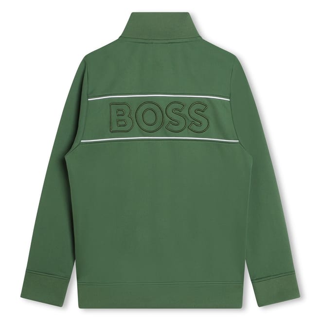 Elevate your athletic wear with this Boss track top. Designed with a zip neck and long sleeves, it features a solid pattern and ribbed cuffs. The regular fit ensures comfort, while the logo adds a touch of brand identity. Ideal for a sporty look. -