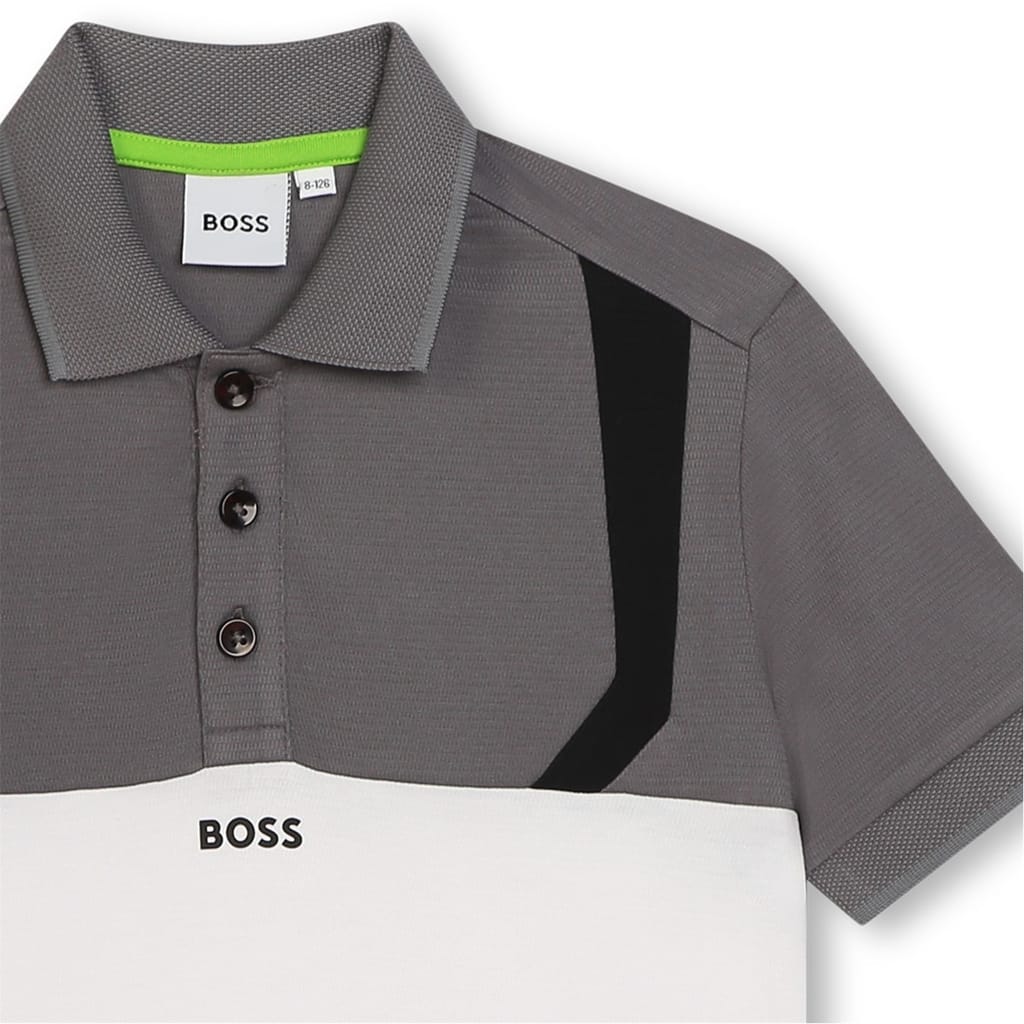 Elevate your semi-formal wardrobe with this BOSS polo shirt. Featuring a collared neck and a classic button closure, this short-sleeve top offers a comfortable regular fit. The design showcases a polo collar and a stylish color block pattern, complete with a subtle logo embellishment. Perfect for a polished look. -