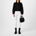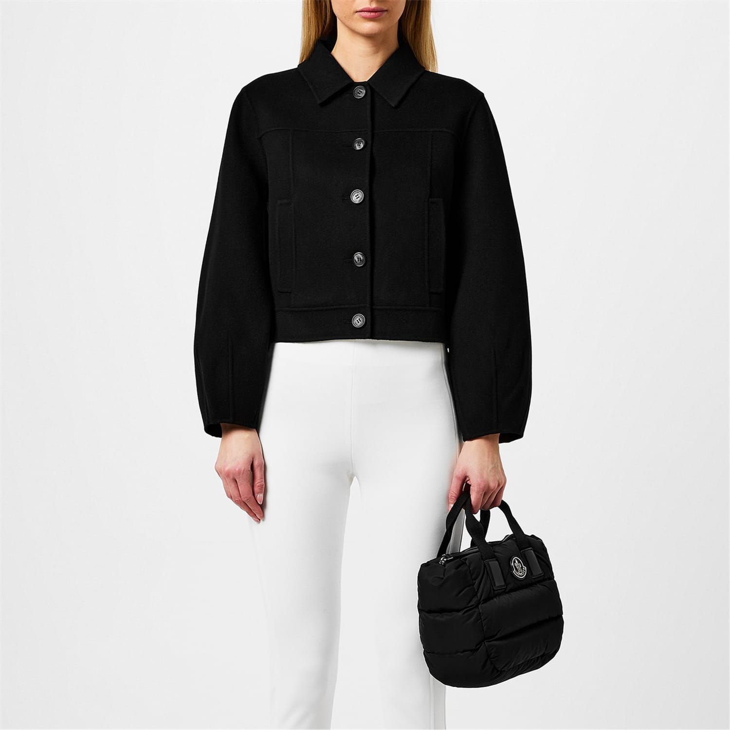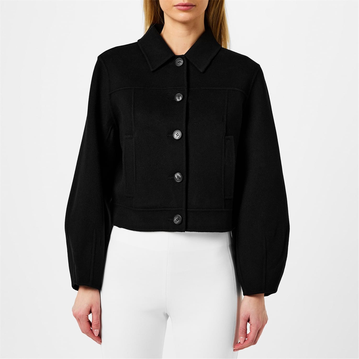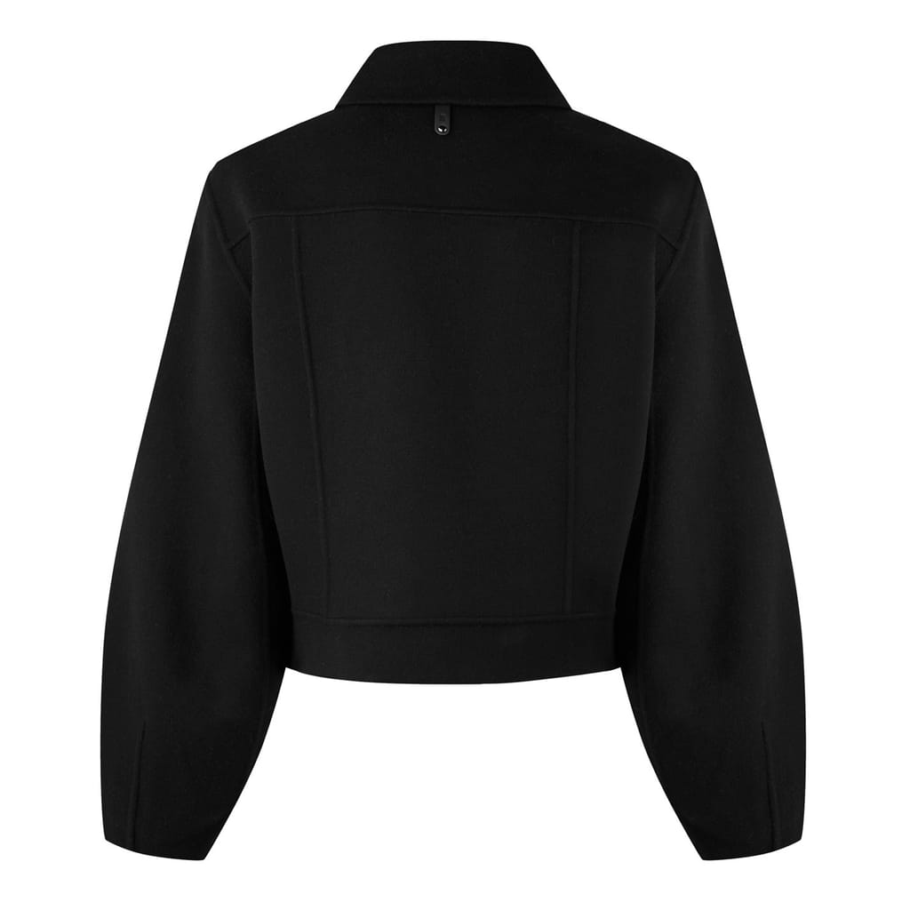 - Crafted from double-face virgin wool and featuring a panelled construction, this unlined jacket provides a sleek and streamlined cropped silhouette that transitions effortlessly from day to evening occasions. The semi-fitted style hugs the figure in all the right places, and the point collar and central front button fastening lend a classic appeal that is elegant and timeless. The balloon sleeves, complete with darts, add a playful touch, while the two side welt pockets provide practicality without compromising style.