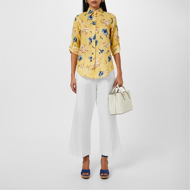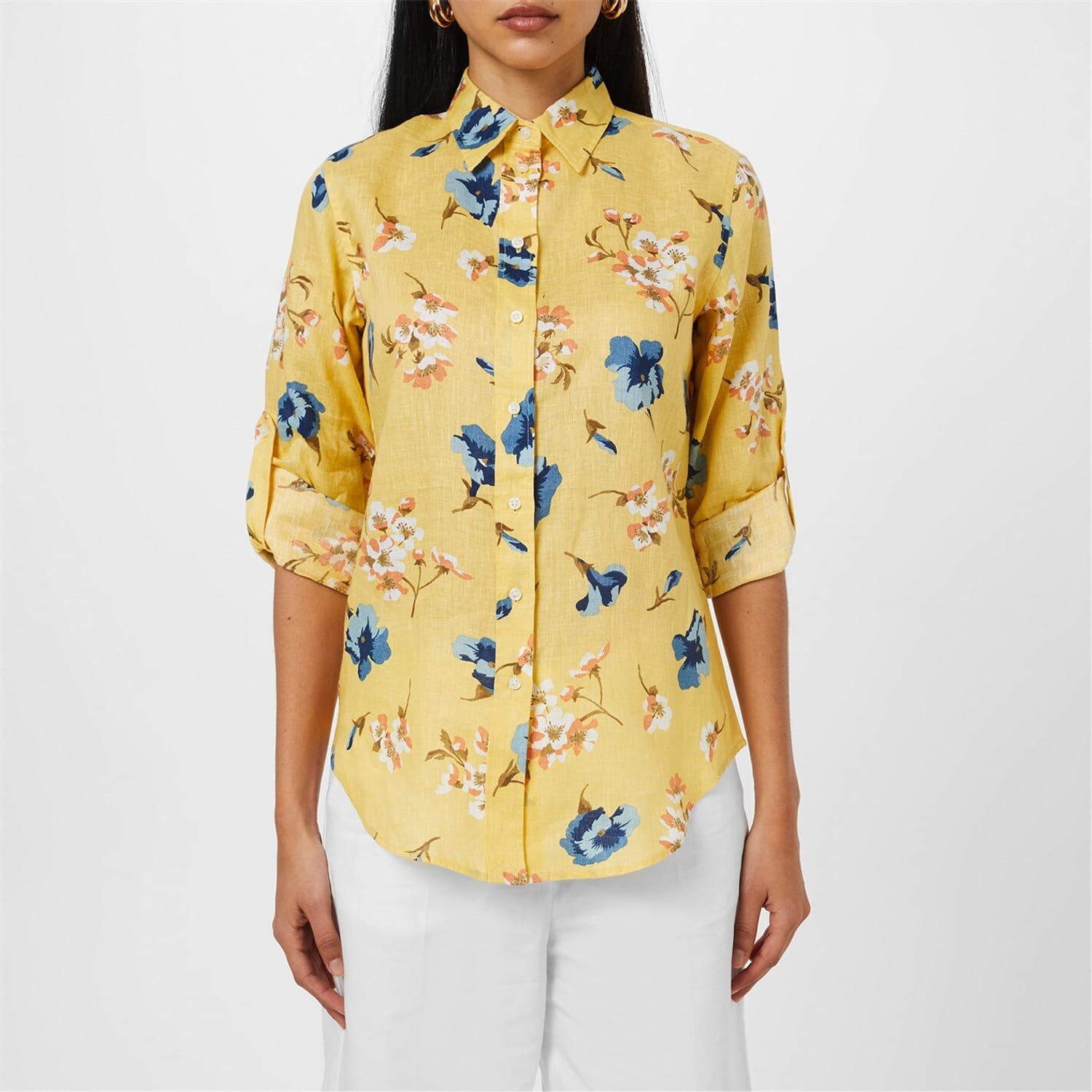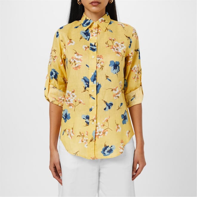 - Crafted from flowing linen, this shirt effortlessly combines comfort and style while the relaxed-fit silhouette ensures a flattering drape, allowing for ease of movement and a laid-back vibe. The full button closure and pointed collar add classic touches, while the long roll-tab sleeves with buttoned barrel cuffs provide versatility for styling options. Designed with impeccable attention to detail, the shirttail hemline gives a polished finish, perfect for both casual and dressier occasions. And let's not forget about the stunning floral pattern that graces the shirt, adding a touch of femininity and elegance. Whether you're attending a garden party, enjoying a leisurely brunch, or simply want to elevate your everyday ensemble, the Karrie Shirt is the ideal choice. Care: Dry clean only. -