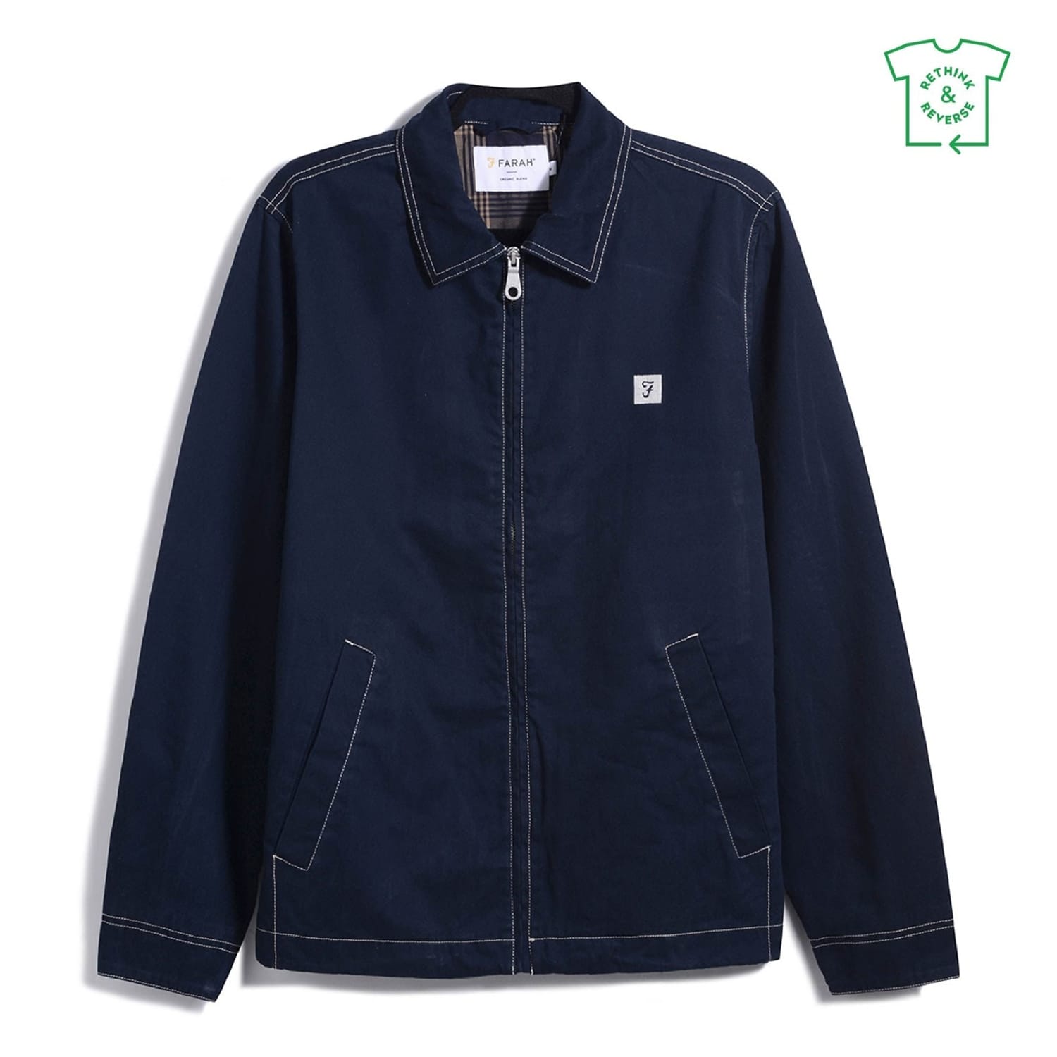 Farah coach jacket from the outerwear collection, perfect for sports enthusiasts. This solid jacket features a collared neck and a convenient zipper closure. It has a regular fit with logo and patch pocket embellishments, ideal for a sleek and functional look. -
