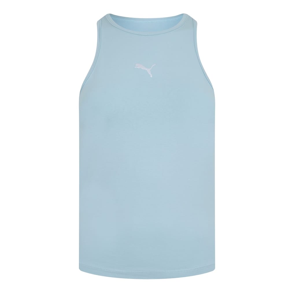 Elevate your activewear with this Puma tank top. Designed for a sleek look, it features a crew neck and a sleeveless design for ultimate comfort. The slim fit and solid pattern offer a modern aesthetic, while the iconic logo embellishment adds a signature touch. Perfect for any workout or casual outing. -