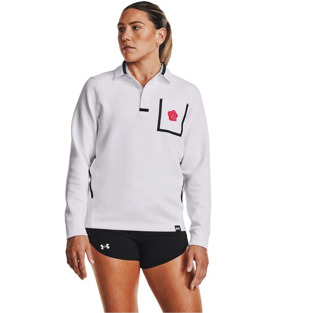 The Under Armour Summit long sleeve rugby shirt features a solid pattern and a regular fit. This knit top is designed with a polo collar, ribbed cuffs, and a chest pocket. Perfect for sports enthusiasts, it includes a logo embellishment for a stylish touch. -