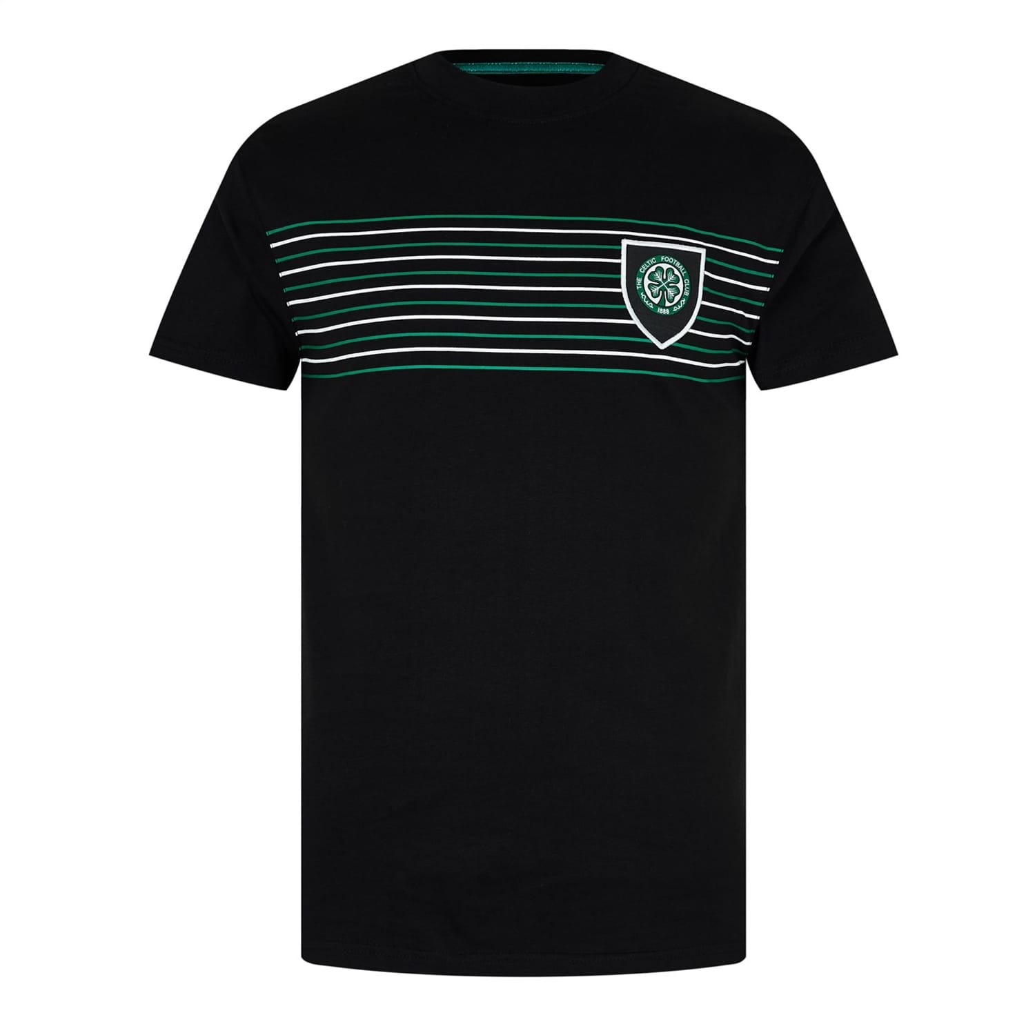 - Embrace the comfort and quality of the ribbed crew neckline, perfectly complemented by the short sleeves and straight hemline. The striking green and white horizontal stripe design embodies the pride and unity of the Celtic faithful, while the woven team crest on the chest serves as a symbol of your unwavering loyalty and belonging to this illustrious club.