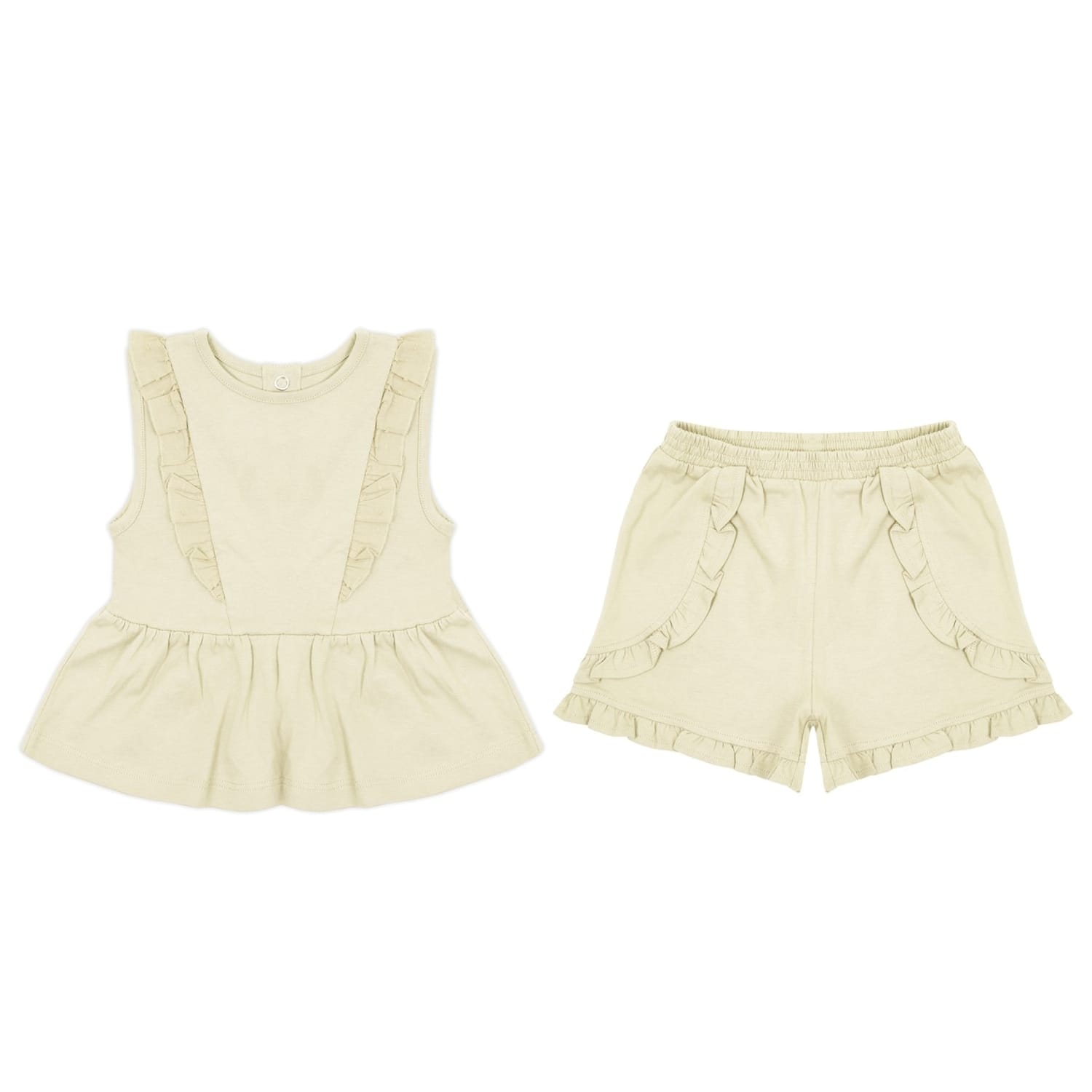 Adorn your baby in the sweetest style with our Frill Tops and Bottoms set. Crafted from soft, breathable fabric, these outfits provide comfort and freedom of movement for your little one. The delicate frill accents add a touch of charm, perfect for everyday wear or special occasions. Each set comes in a variety of lovely colors and playful prints, making it easy to mix and match for adorable looks. Designed for durability and easy care, these outfits are as practical as they are cute. Keep your baby looking stylish and feeling comfortable with our Frill Tops and Bottoms collection.