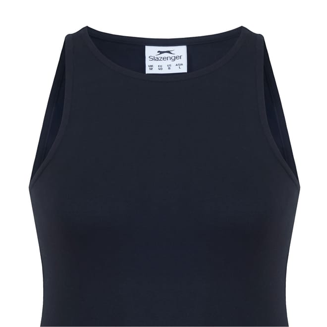 Discover the Slazenger sleeveless top, perfect for casual occasions. This slim fit design features a crew neck and a solid pattern, offering a sleek and modern look. The top is embellished with the iconic logo, adding a touch of brand identity to your wardrobe. -