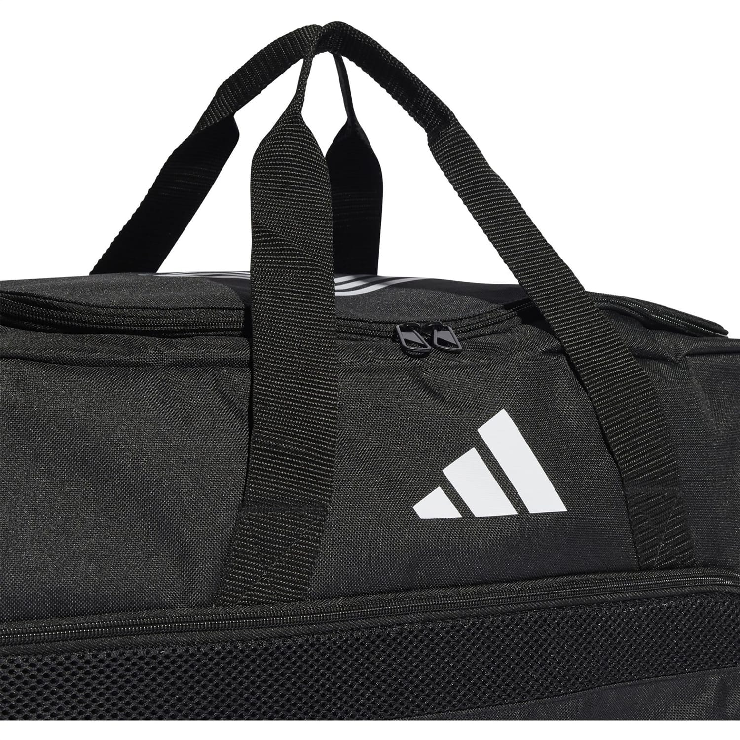 This adidas Tiro League duffel bag is perfect for carrying your football gear to and from the game. The hard-case bottom compartment keeps your essentials safe and organised, and the side mesh pocket is perfect for holding a water bottle or half-time snacks. The large U-shaped opening means no more rooting around for your gear.