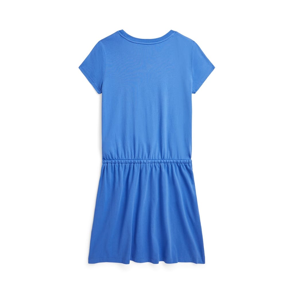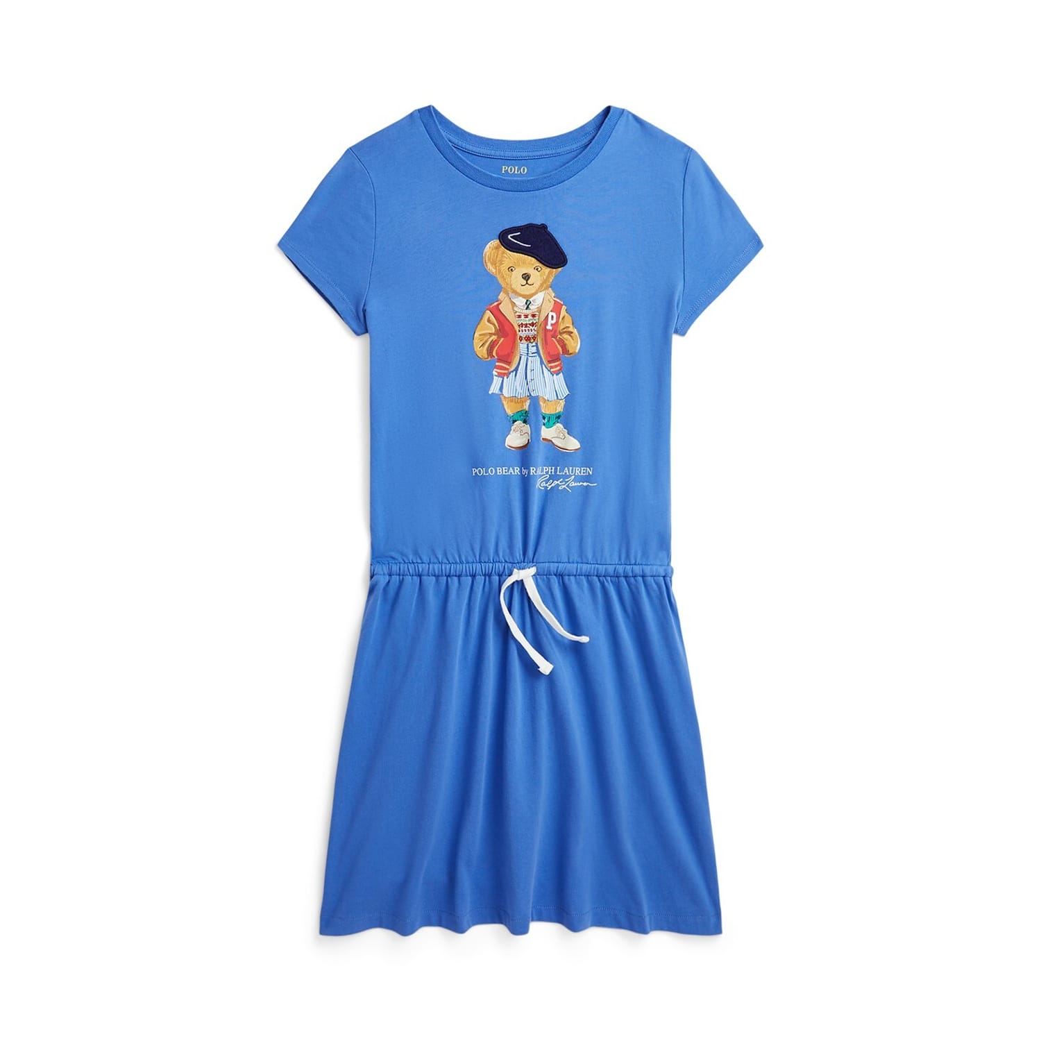 Step into the world of Polo Ralph Lauren, where timeless elegance meets accessible luxury. Presenting the Bear Cotton Jersey Dress, a piece that effortlessly combines comfort and style for the fashion-forward individual seeking a distinguished look. Crafted from full cotton canvas, this dress offers a luxurious feel against the skin, ensuring maximum comfort throughout the day. The regular fit and crewneck provide a classic silhouette that is both flattering and versatile, making it suitable for various occasions. With short sleeves and a drop-waist silhouette, this dress showcases a blend of contemporary design and timeless charm. The drawstring waist allows for a customizable fit to accentuate the waistline, creating a feminine and elegant look. Adding a touch of whimsy, the Polo Bear, Polo Bear by Ralph Lauren, and Ralph Lauren script are printed on the centre front, paying homage to the brand's rich heritage and iconic style. The Bear Cotton Jersey Dress exudes an air of effortless -