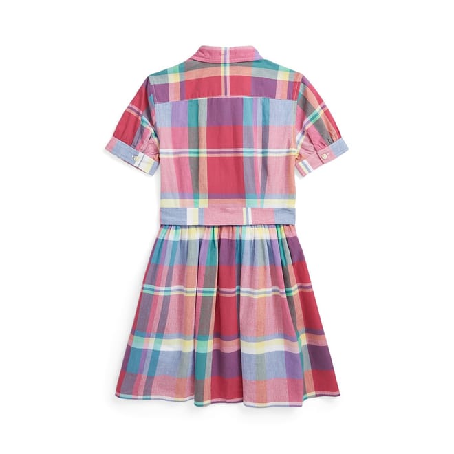 Step into the world of Polo Ralph Lauren, where accessible luxury and timeless style await. Introducing the Check Shirt Dress Juniors, a true embodiment of elegance and sophistication. Crafted from full cotton canvas, this dress boasts a luxurious feel against the skin, offering comfort without compromising style. The fit-and-flare silhouette flatters the figure, creating a feminine and graceful look that is perfect for any occasion. Featuring a classic club collar and buttoned placket, this dress exudes an air of refinement and sophistication. The short sleeves with buttoned barrel armbands add a touch of charm, perfect for warm weather days. The shirred waist and removable self-sash provide a customizable fit that accentuates the waistline, creating a flattering and elegant silhouette. Side on-seam pockets offer practicality and convenience, while the signature embroidered Pony on the left chest showcases the brand's rich heritage and commitment to quality. Ideal for both casual days -