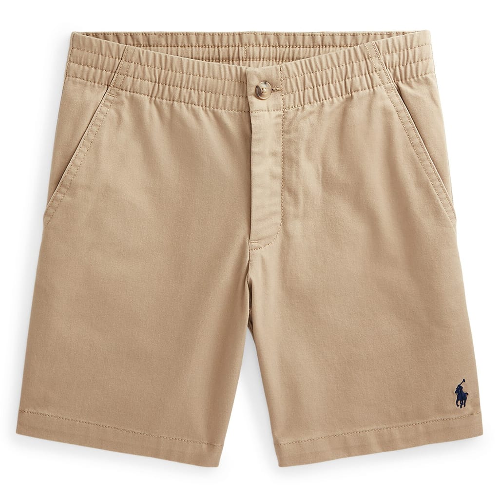 Elevate your little one's summer ensemble with these Chino Shorts by Polo Ralph Lauren. Expertly crafted from a soft and stretchy cotton blend to create a luxuriously lightweight appeal that keeps your little one comfortable with it's breathable feel. Featuring an elastic waistband with an interior drawstring, these shorts, cut to a relaxed fit, are secured with the zip fly with a buttoned closure adding a touch of sophistication. With two front-angled pockets and two back-buttoned pockets, your little one will have ample space to keep their essentials close at hand. Embodying the brand's iconic heritage, these shorts, designed in a classic colourway, feature the signature embroidered Pony on the left hem, symbolizing Polo Ralph Lauren's commitment to quality and craftsmanship. Perfect for both casual and semi-formal occasions, these Chino Shorts effortlessly transition from day to night. Whether paired with a crisp white shirt or a comfortable polo, they exude sophistication and timeless style.