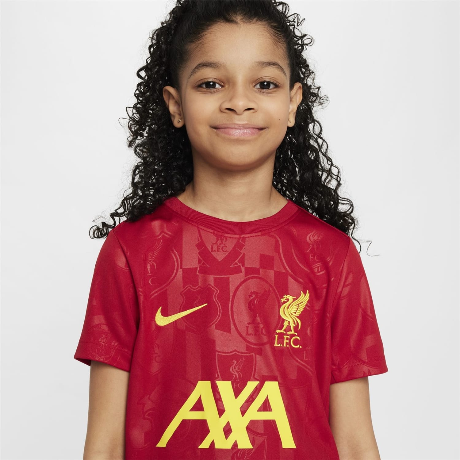 The junior Liverpool Academy Pro Pre Match Shirt from Nike for the 2024/25 season is the perfect addition to your little one's football shirt collection, celebrating the rich history of The Reds.