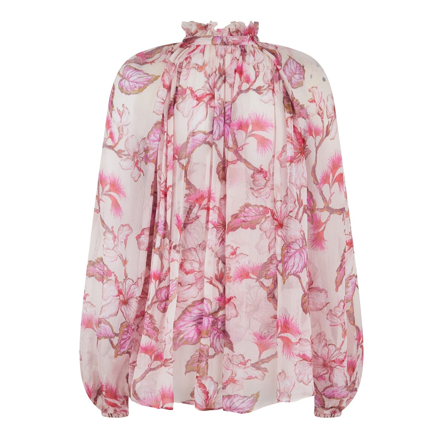 - The all-over floral design creates a delightful and romantic look that pairs into any summery ensemble. The Zimmermann logo rests gracefully on the inner collar ensuring brand recognition. Whether a romantic date or a sophisticated garden party, Zimmermann's Matchmaker Billow Blouse is the perfect addition to your wardrobe.