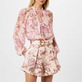 Zimmermann introduces the Matchmaker Billow Blouse, the latest addition to its Resort 2024 collection. Beautifully crafted from the finest and most delicate viscose georgette, this women's top showcases a ruffled stand collar that flows effortlessly into a V-neckline with a tie fastening. Full-length sleeves with elasticated cuffs- and straight hem- add a contemporary touch.