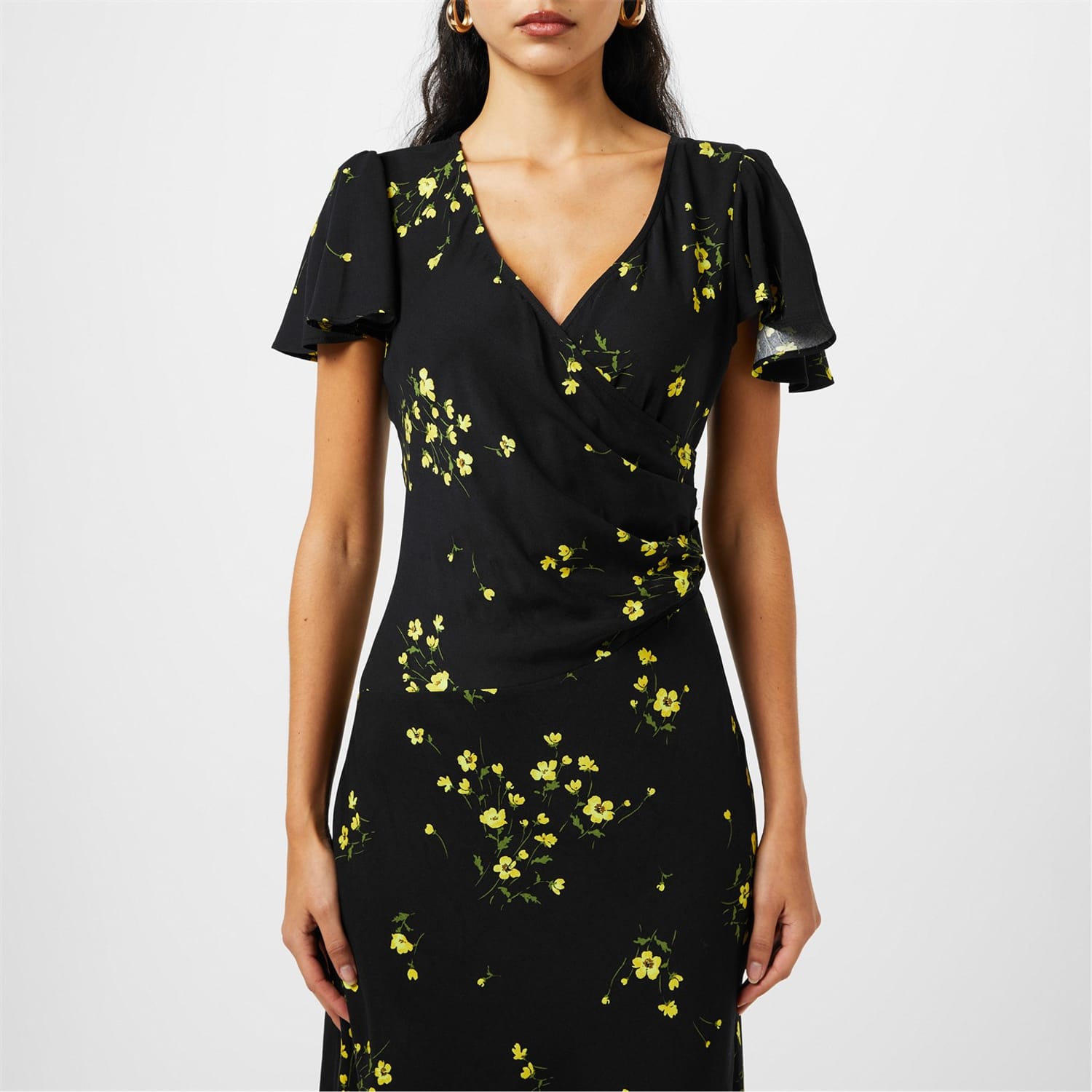 This charming midi dress from Nobody Child features a delicate floral pattern, making it perfect for children. The wrap style with a V-neck adds a touch of elegance, while the short flutter sleeves offer a playful finish. Designed with a regular fit, this dress is both stylish and comfortable for any occasion. -