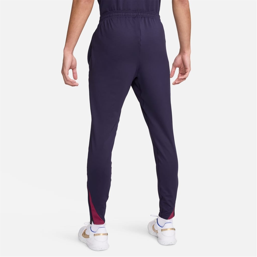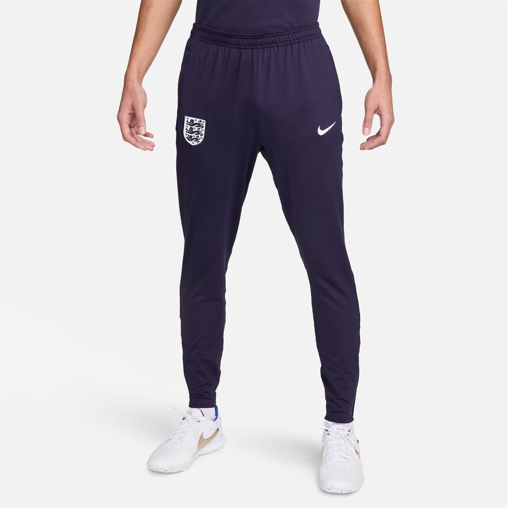- Crafted with a polyester blend and featuring Nike's signature Dri-FIT technology, these pants are designed to keep you cool and dry, even during intense workouts or competitive matches. The stretch knit fabric ensures optimal flexibility and freedom of movement, allowing you to unleash your athletic skills. With a classic fit and full-length design, these pants offer high-quality comfort and coverage. The zip cuffs allow easy on and off, while the elasticated mid-rise waist with a drawstring fastening ensures a secure and customisable fit. The Nike England Strike Pants come equipped with two side slip pockets to keep your valuables close at hand while you dominate on the field. Coordinate with the Nike England Strike Short Sleeve Top 2024 Adults to create the full ensemble.