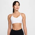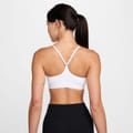 Crush your gym sesh and the rest of your day in this Indy Bra. Light support gives you a gentle hold. While sweat-wicking fabric feels soft against your skin, its thin but sturdy straps and low-profile design give you a smooth silhouette—even if you throw on a top. And forget playing the pad-shifting game, too. Specially engineered removable pads are constructed to stay put, yet still give you the option to choose your coverage.