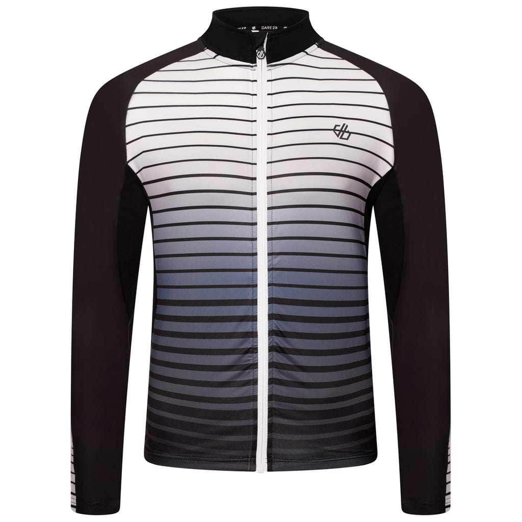 Elevate your workout wardrobe with Dare 2b's performance track top. This slim-fit athletic top features a mock neck and long sleeves for added warmth, while the zipper closure ensures convenience. The horizontal stripe pattern and logo embellishment add a stylish touch, making it a standout piece in any fitness collection. -