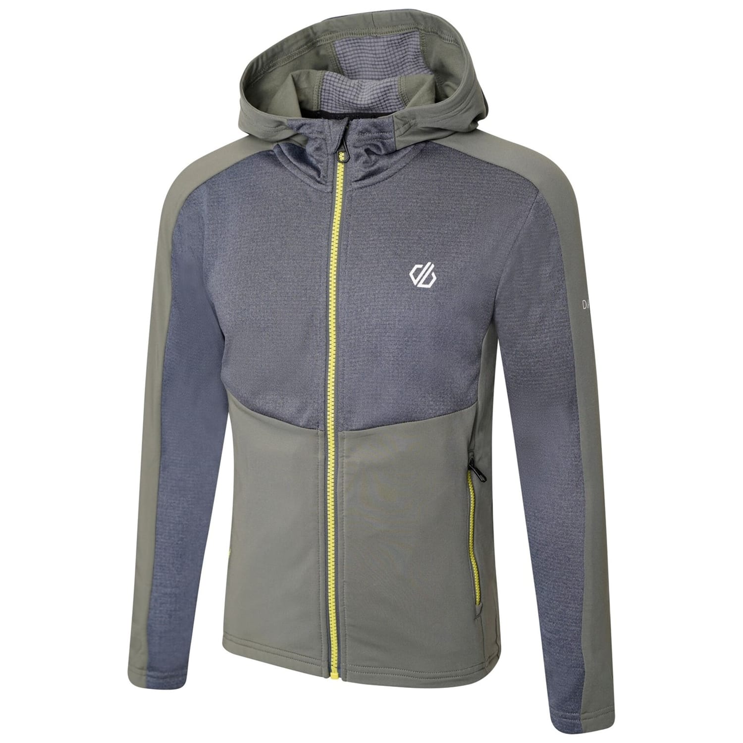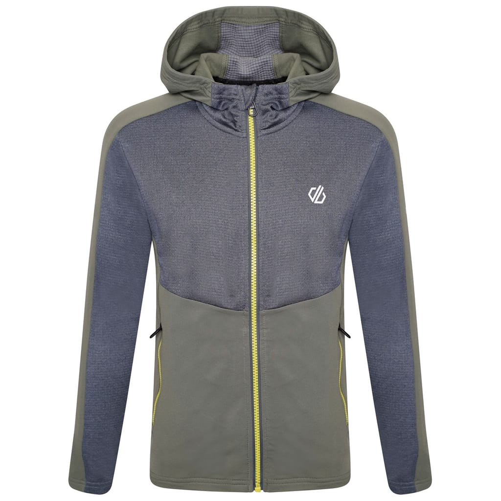 This Dare 2b kids' sweatshirt jacket offers a stylish color block design and comfortable regular fit. Featuring a hooded neckline, raglan sleeves, and a zipper closure, it's perfect for everyday wear. The stretch fabric ensures ease of movement, while the logo embellishment adds a touch of brand appeal. -