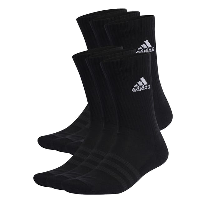 Perfect for PE lessons and Saturday Sports Club, these Cushioned Sportswear Crew Socks are the natural choice for your little one's gym bag. Cut in a recycled and renewable cotton blend, this 6-pack features arch support to relieve muscle strain and sole cushioning in the toes and heel. The solid base colouring makes the contrasting adidas logo pop, and the iconic 3 Stripes across the foot make it easy for others to see that your youngster is wearing the best. Fabric: 62% cotton, 63% recycled polyester, 1% elastane, and 1% recycled polyamide. See garment labelling for care instructions. -