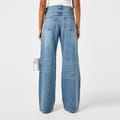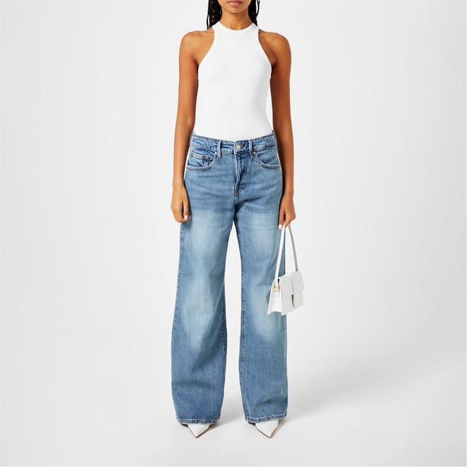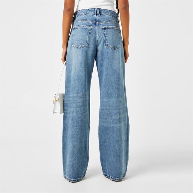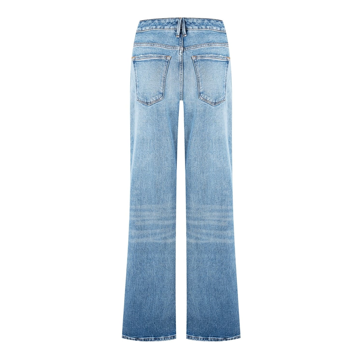 Discover the relaxed fit wide leg jeans from Good American. Featuring a chic wide leg cut and a convenient zipper closure, these jeans offer both style and comfort. Perfect for those seeking a fashionable yet relaxed look in their wardrobe. -