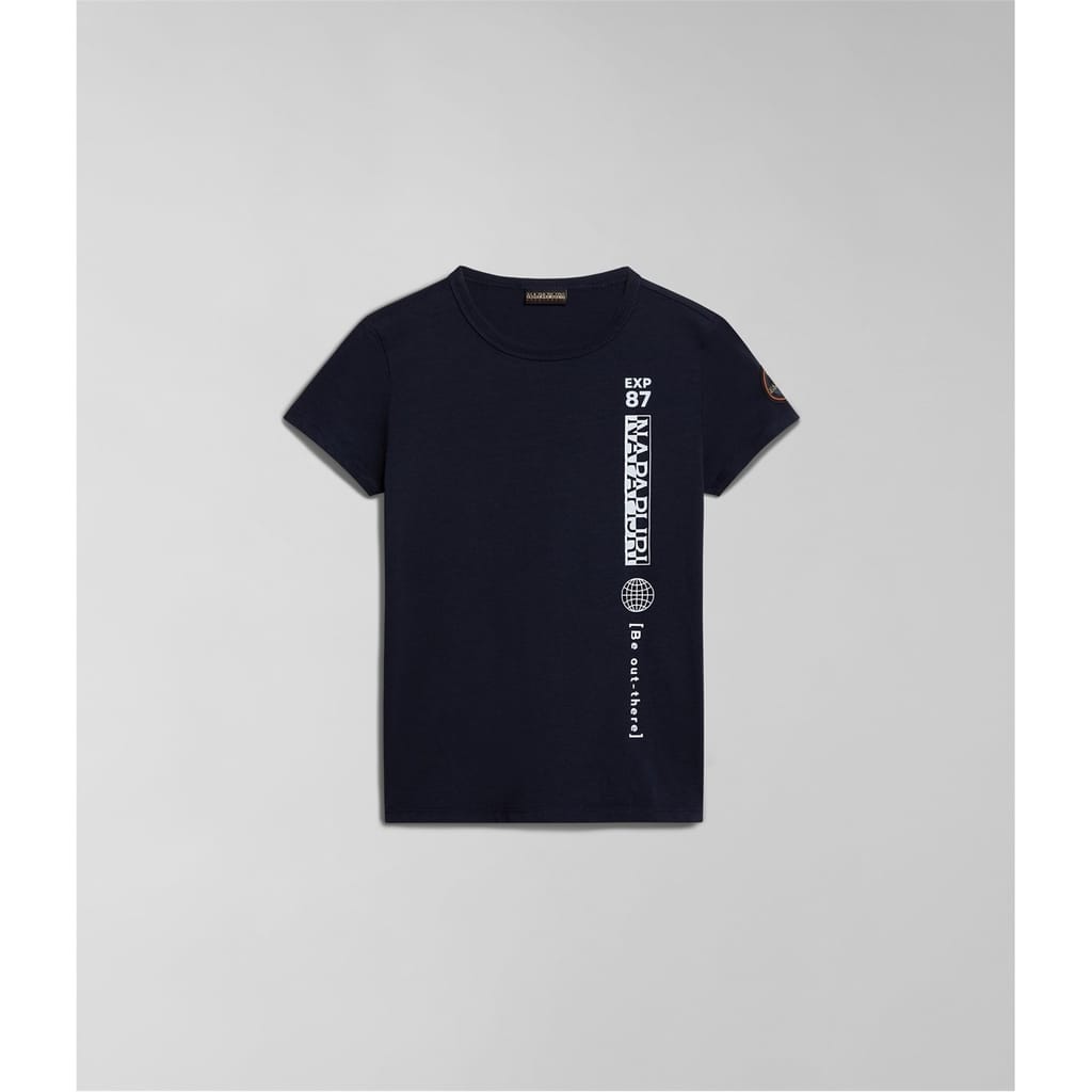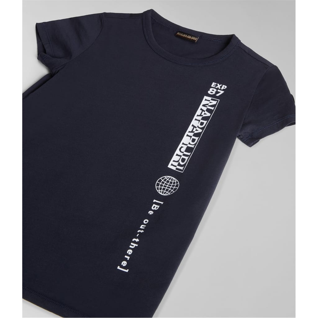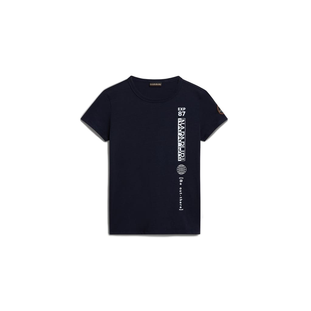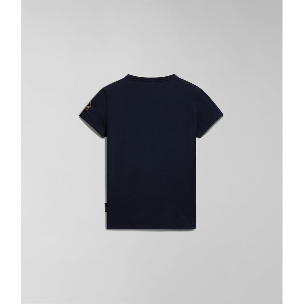 Elevate your casual wardrobe with this Napapijri t-shirt. Featuring a regular fit and short sleeves, this piece offers comfort and style. The crew neck design complements the graphic print and solid pattern, while the logo and patch embellishments add a distinctive touch. -