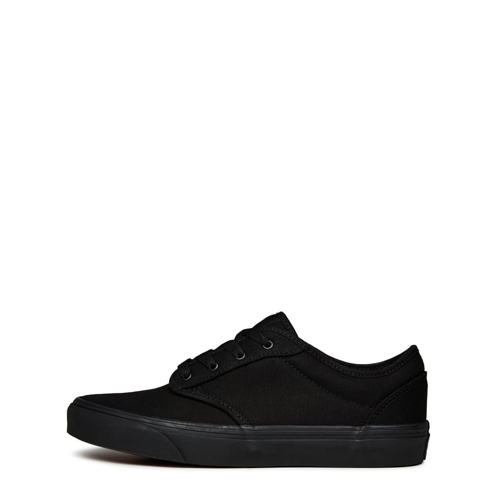 - Designed in sleek black adorned with branding on the tongue, insole and heel, as well as a chic logo tab at the side, serving as a symbol of Vans' rich heritage and commitment to quality. Whether your young one is catching up with friends or enjoying a family day out, the Vans Atwood Sneakers are the perfect companion.