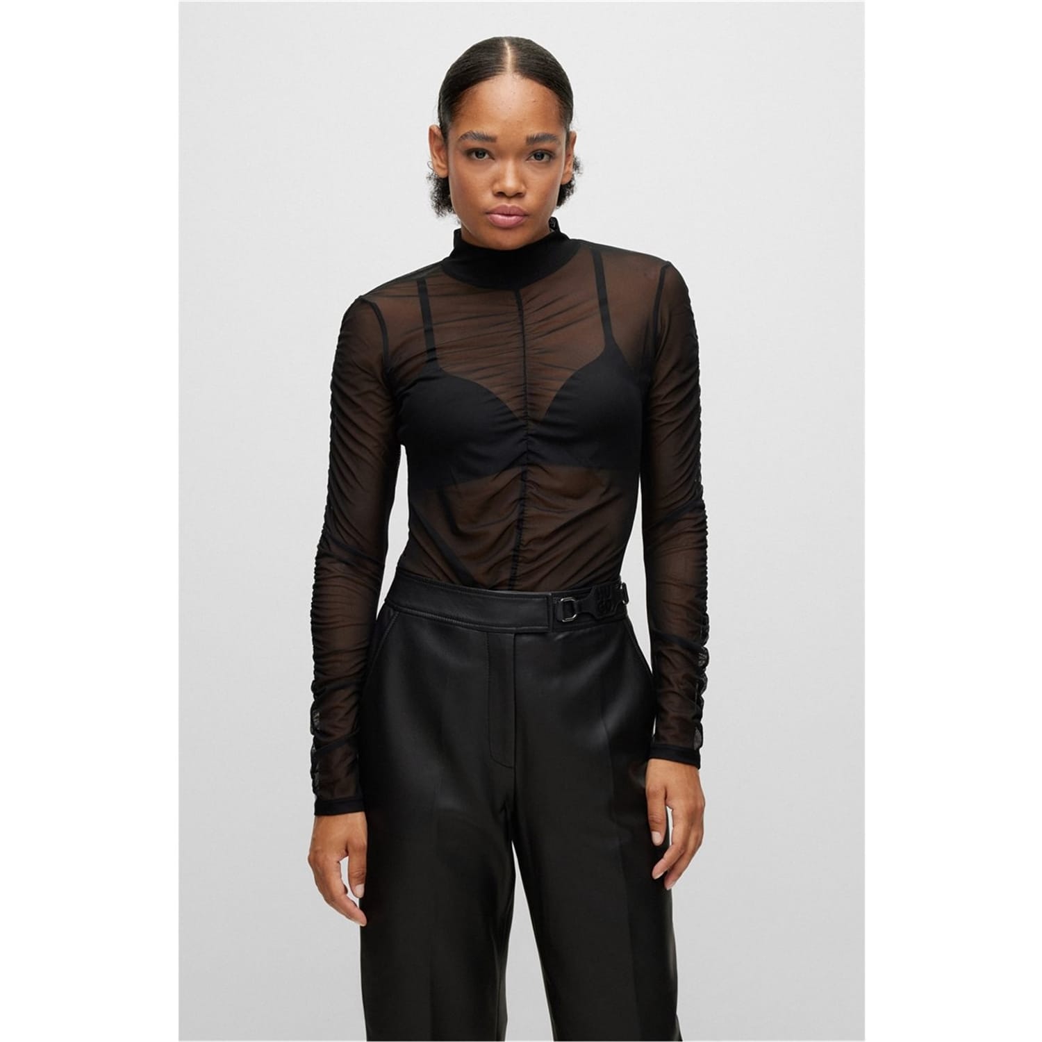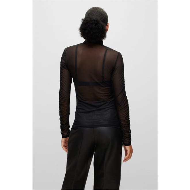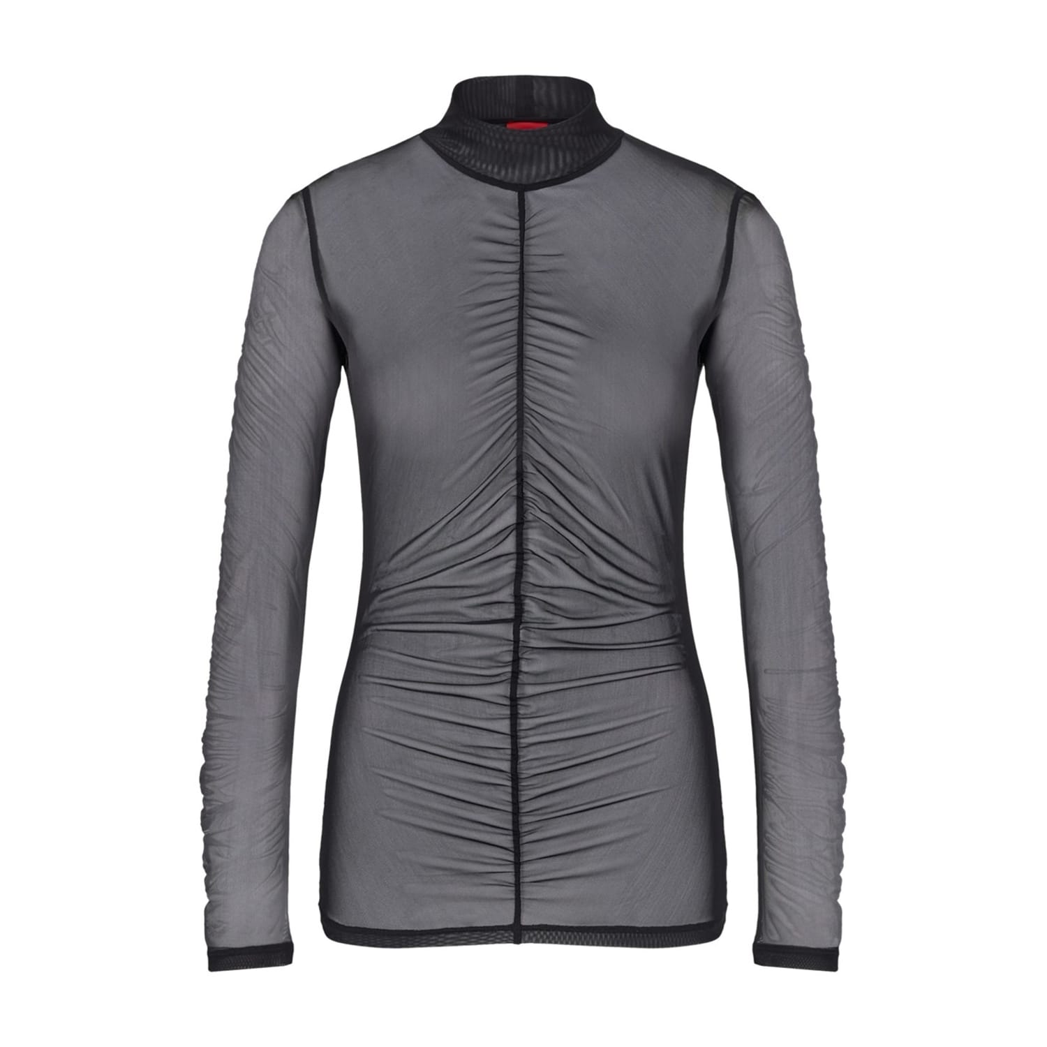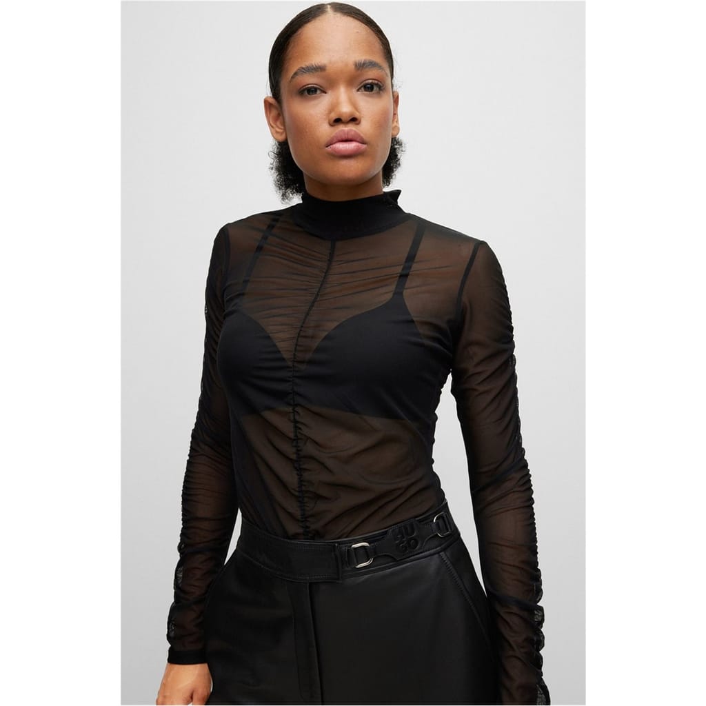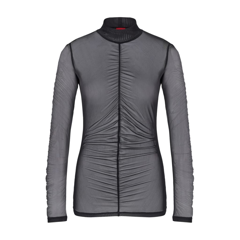 This Hugo blouse is a refined addition to your wardrobe. It features a turtleneck and long sleeves, offering a sophisticated look. Crafted in a slim fit, it accentuates your silhouette. The solid pattern adds a classic touch to this elegant top. -