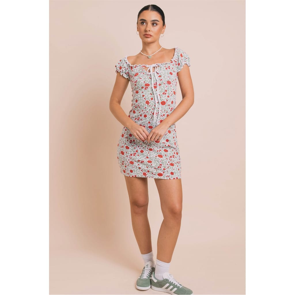Elevate your wardrobe with this mini dress from Daisy Street. Featuring a charming floral pattern, it boasts a square neckline and stylish puff sleeves. The slim fit enhances your silhouette, while the straight hem adds a touch of sophistication. Perfect for any occasion, this dress is a must-have addition to your fashion collection. -