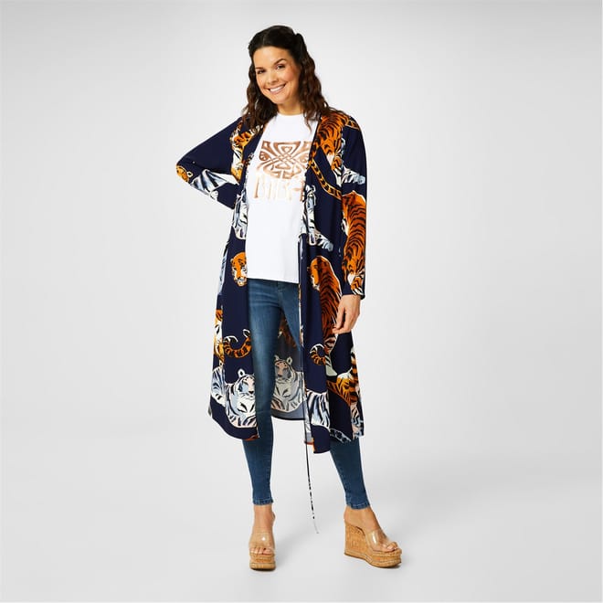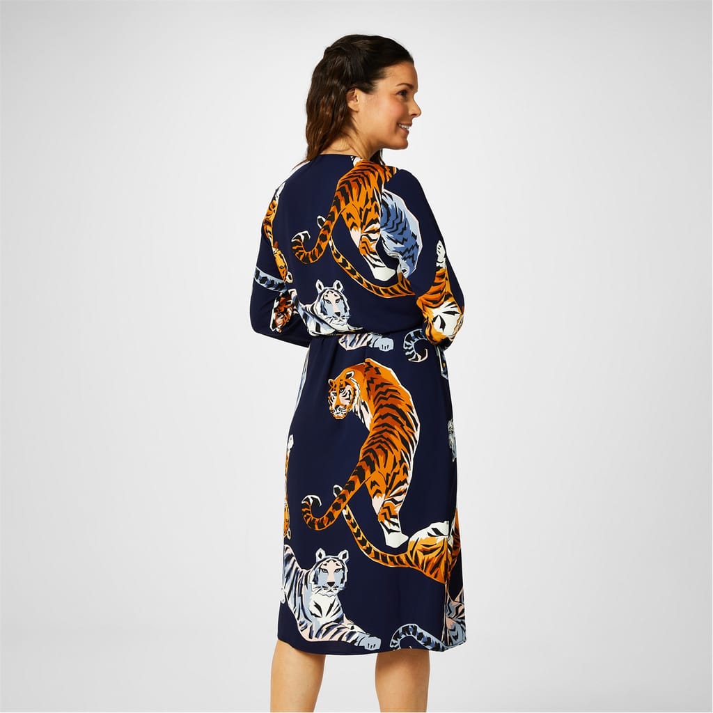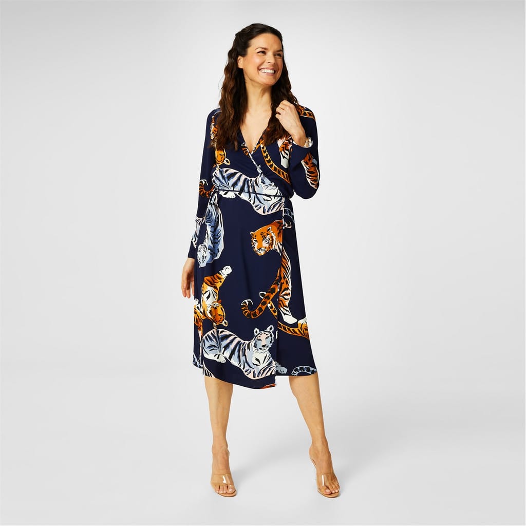 - Wear it as a standalone dress for a sophisticated and polished look. Or for a more casual ensemble, pair the Kimono Wrap Dress with a cami and a pair of Biba Stevie Jeans, creating a chic layered outfit. -