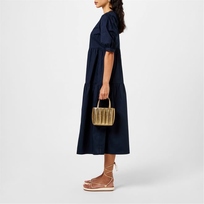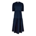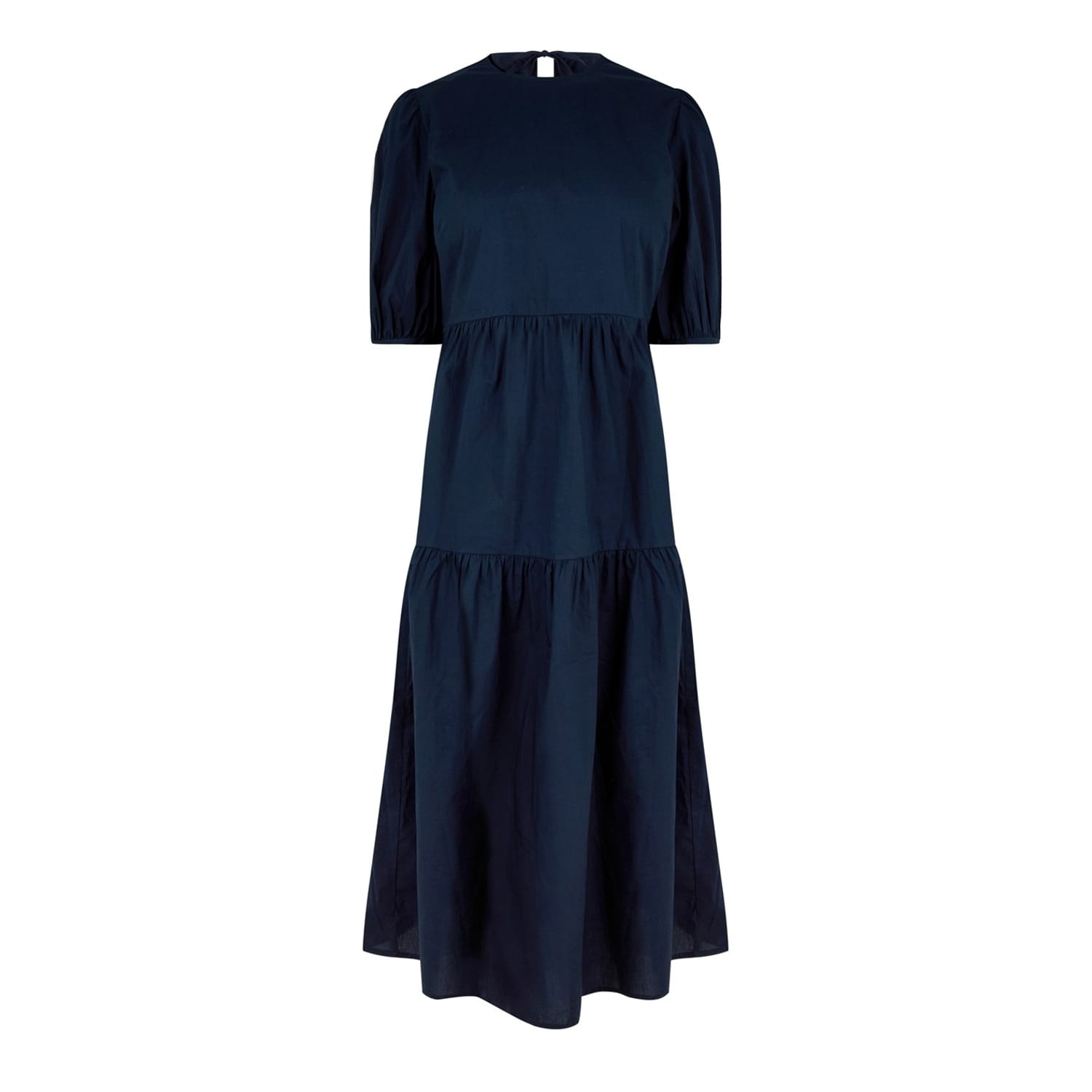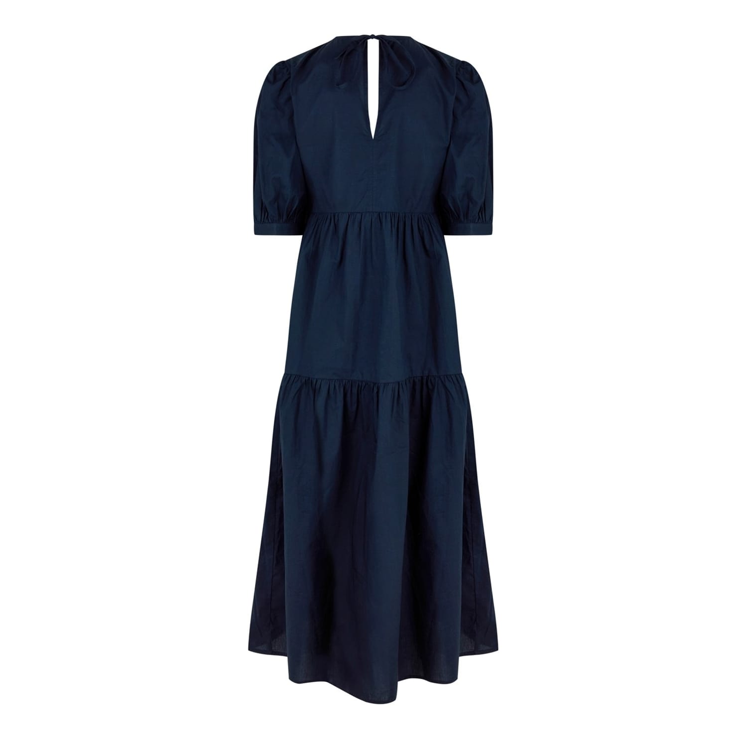 Discover the perfect children's midi dress from Nobody Child. This dress features a classic crew neckline, short puff sleeves, and a straight hemline. The solid pattern and smocked embellishments add a touch of elegance, making it an ideal choice for any occasion. -