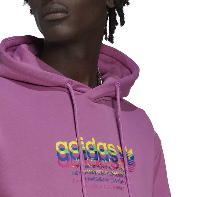 This Adidas Originals sweatshirt is a must-have for spring and summer. Featuring a hooded neckline and long sleeves, it offers a regular fit for ultimate comfort. The drawstring closure and ribbed cuffs ensure a secure fit. Adorned with a graphic print and logo embellishments, this hoodie combines style and functionality. -