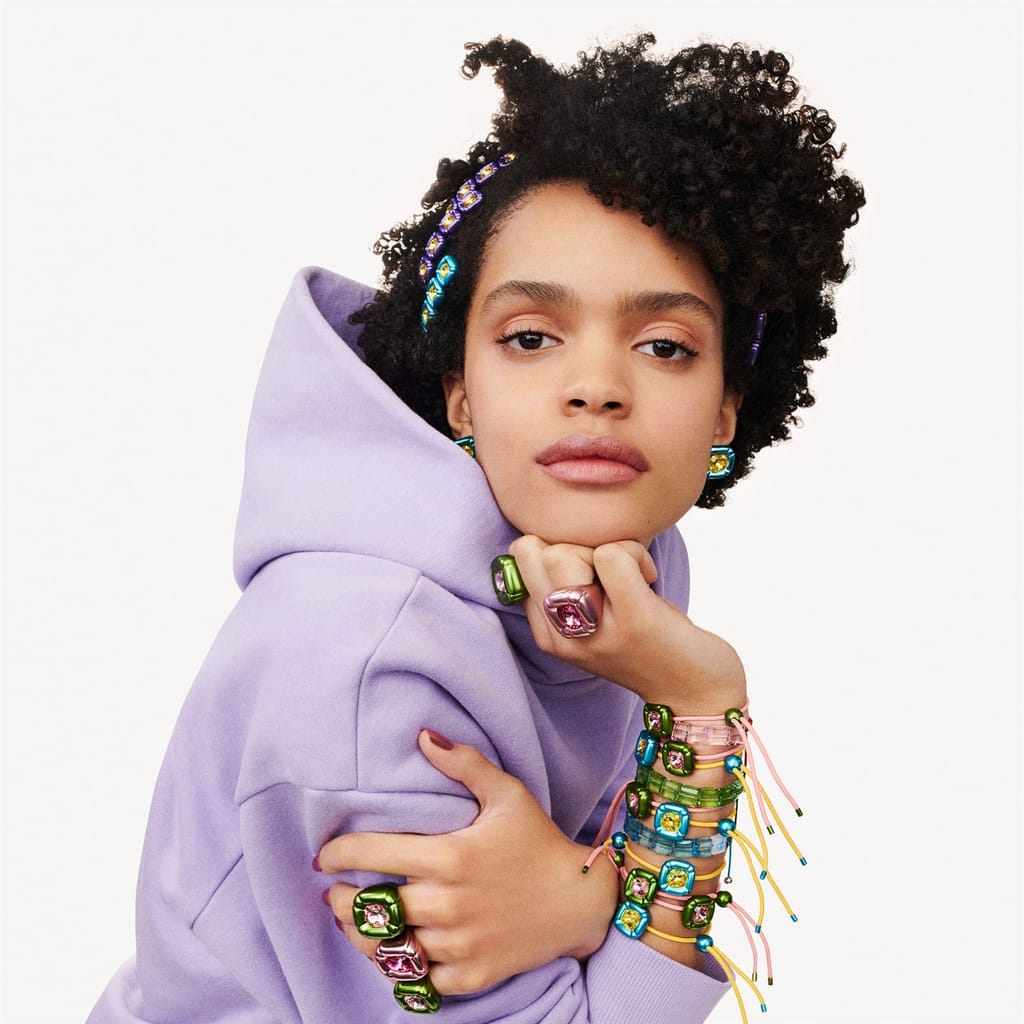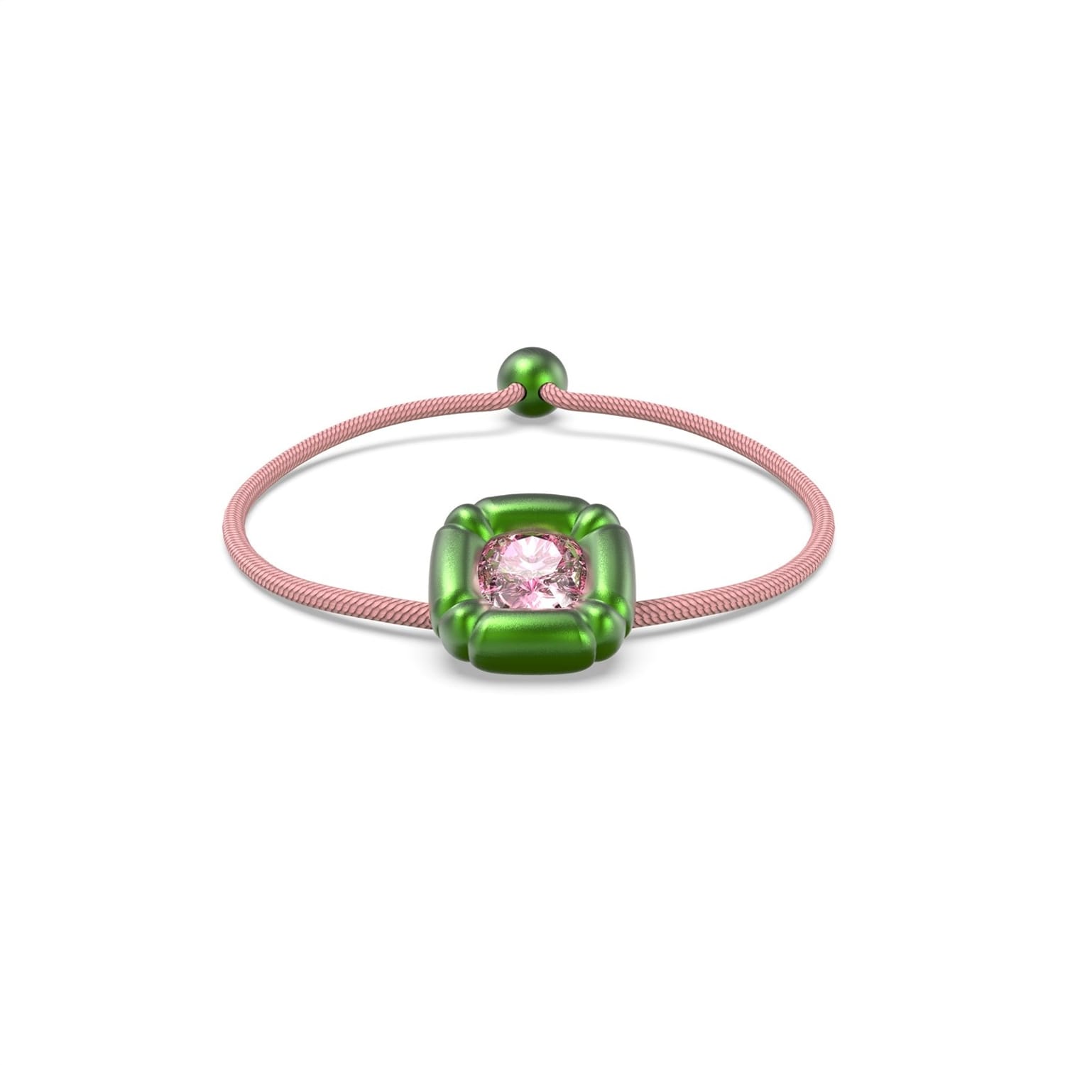 Swarovski presents this vibrant Dulcis Bracelet, a striking piece inspired by the Pop Art movement. Resplendent in the house's signature glamour and expertise, this women's designer bracelet is defined by a multi-faceted precision-cut rose crystal set within a contrasting moulded setting A braided cord- adorned with an adjustable sliding ball clasp at the rear- ensures a perfect fit for every wrist.
