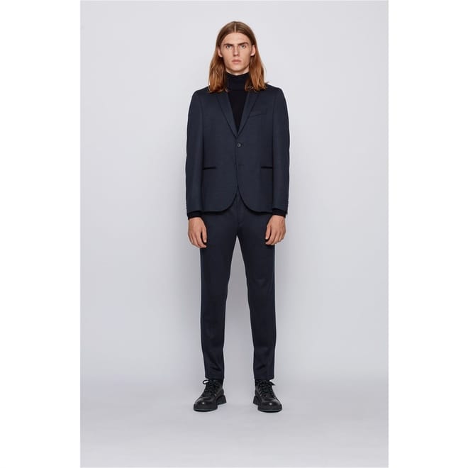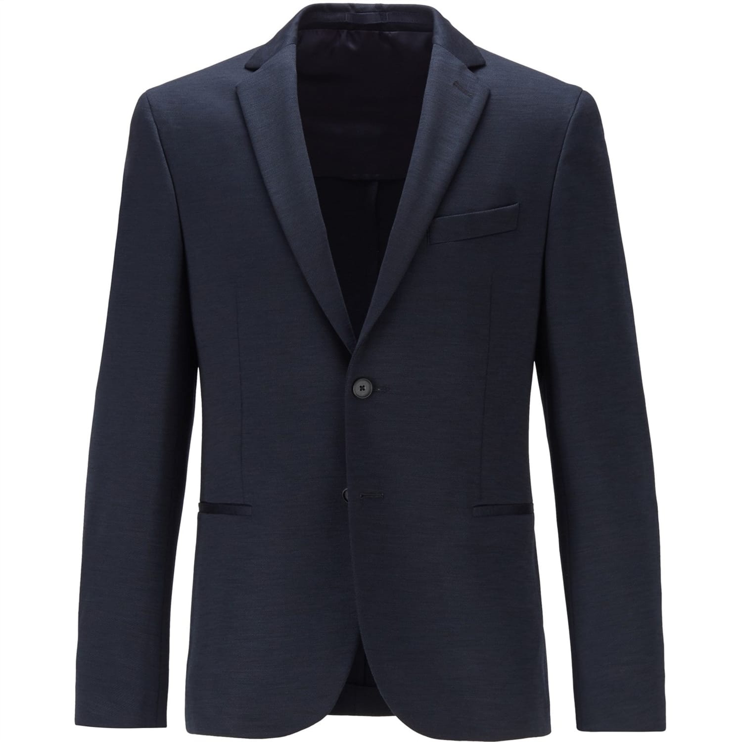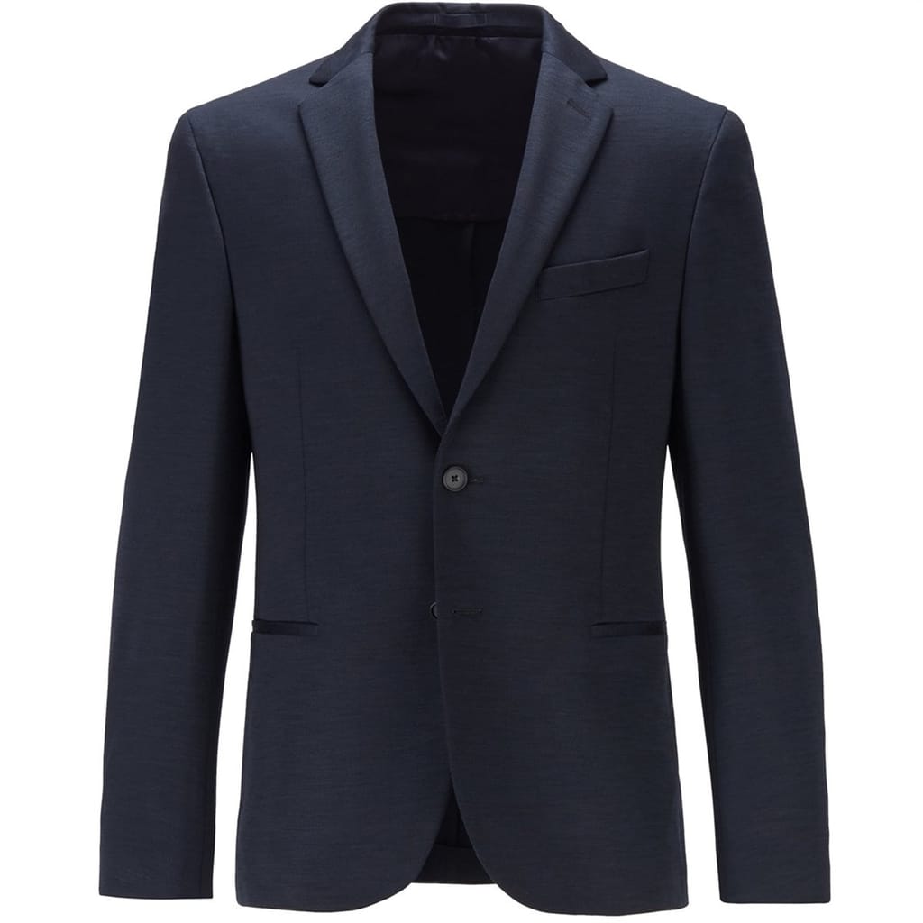 Elevate your outerwear collection with this slim fit suit jacket from Boss. Featuring a collared neck and a long length, this solid jacket offers a sophisticated look. The button closure ensures a secure fit, making it an ideal choice for formal occasions. -