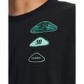 This Under Armour top is designed for performance and features a relaxed fit with a crew neck. The short sleeves and graphic print make it ideal for casual wear. A large genie graphic adds a unique touch, while the logo embellishment highlights the brand. Suitable for summer and all-season use, this top combines style and functionality. -