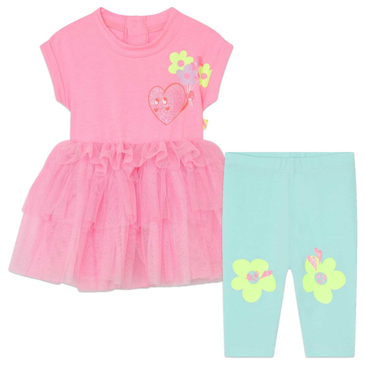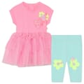 This Billieblush set features a charming t-shirt and leggings combination. The t-shirt boasts a crew neck and short plain sleeves, adorned with a delightful heart applique. Paired with comfortable leggings, this ensemble is perfect for a stylish and playful look. Ideal for those who appreciate a touch of whimsy in their wardrobe. -
