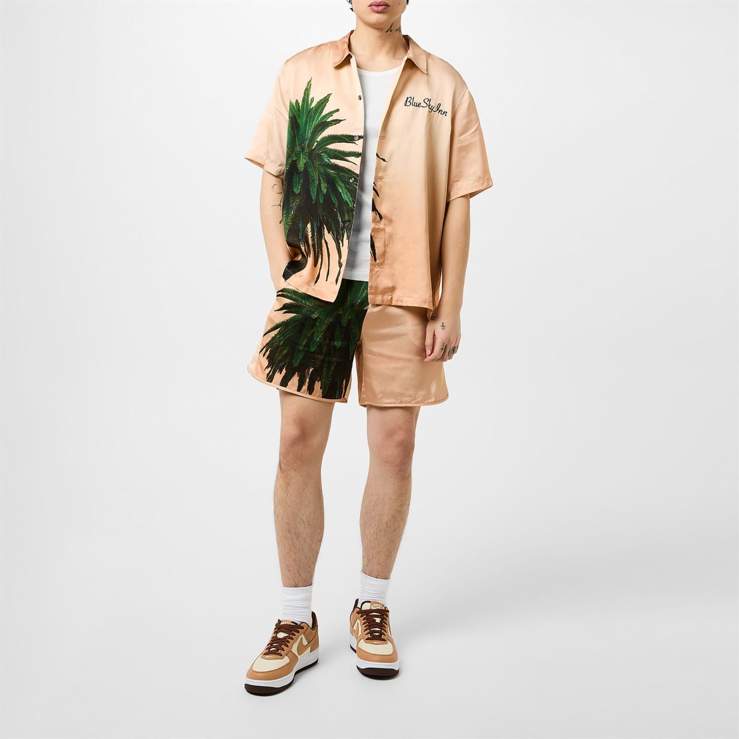 Discover the Blue Sky Inn shorts, featuring a graphic print and woven design. These casual shorts come with an elasticated waistband for comfort and practicality. The addition of pockets enhances their functionality, making them a versatile choice for various occasions. -