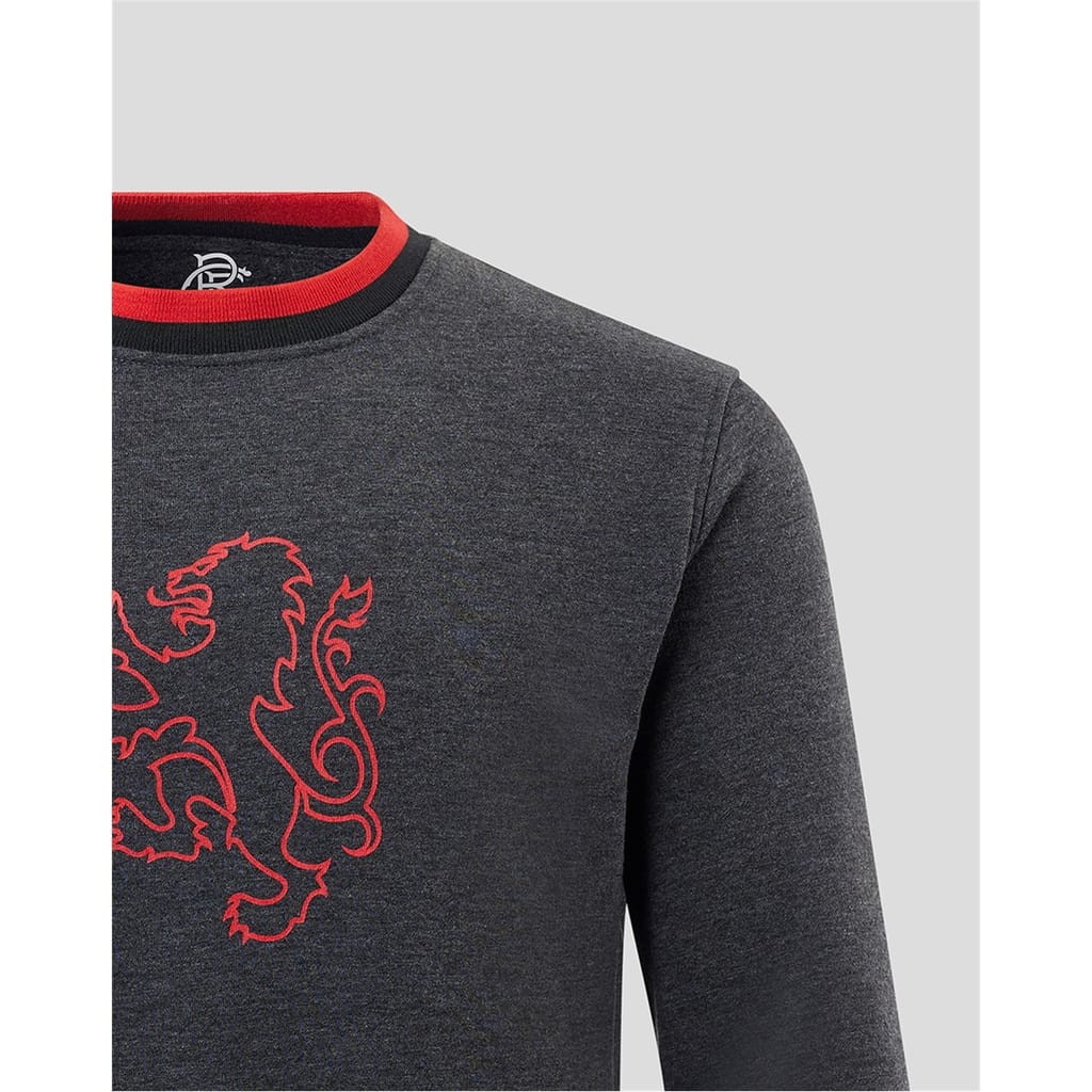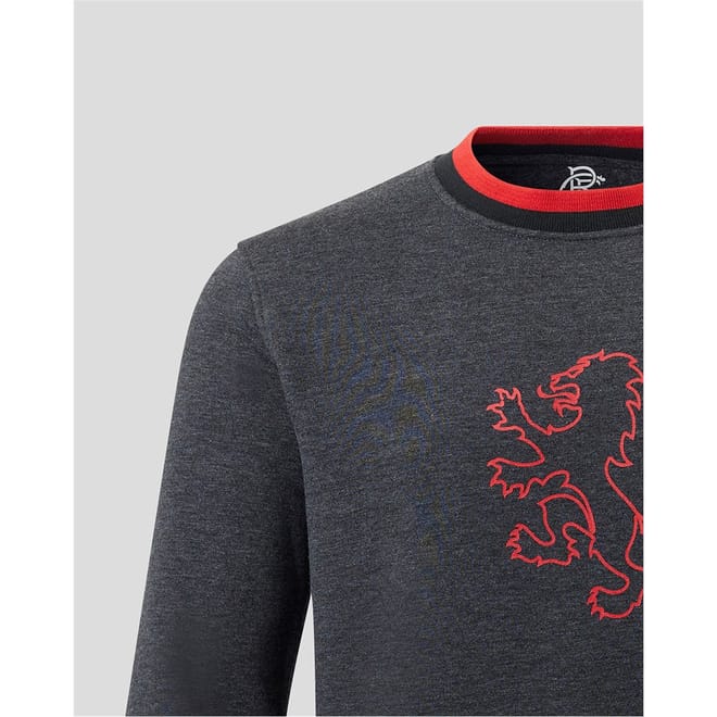 This Castore sweater is perfect for spring and summer. Featuring a solid pattern and a crew neck, it offers a regular fit with long sleeves. The ribbed hem and ribbed cuffs add a touch of comfort. Embellished with an embroidered Rangers FC logo, it's ideal for sporting activities. -