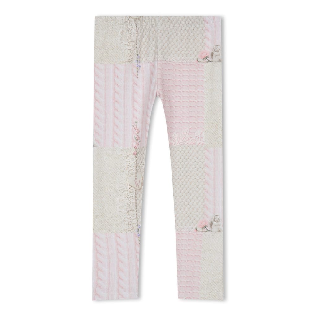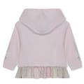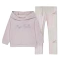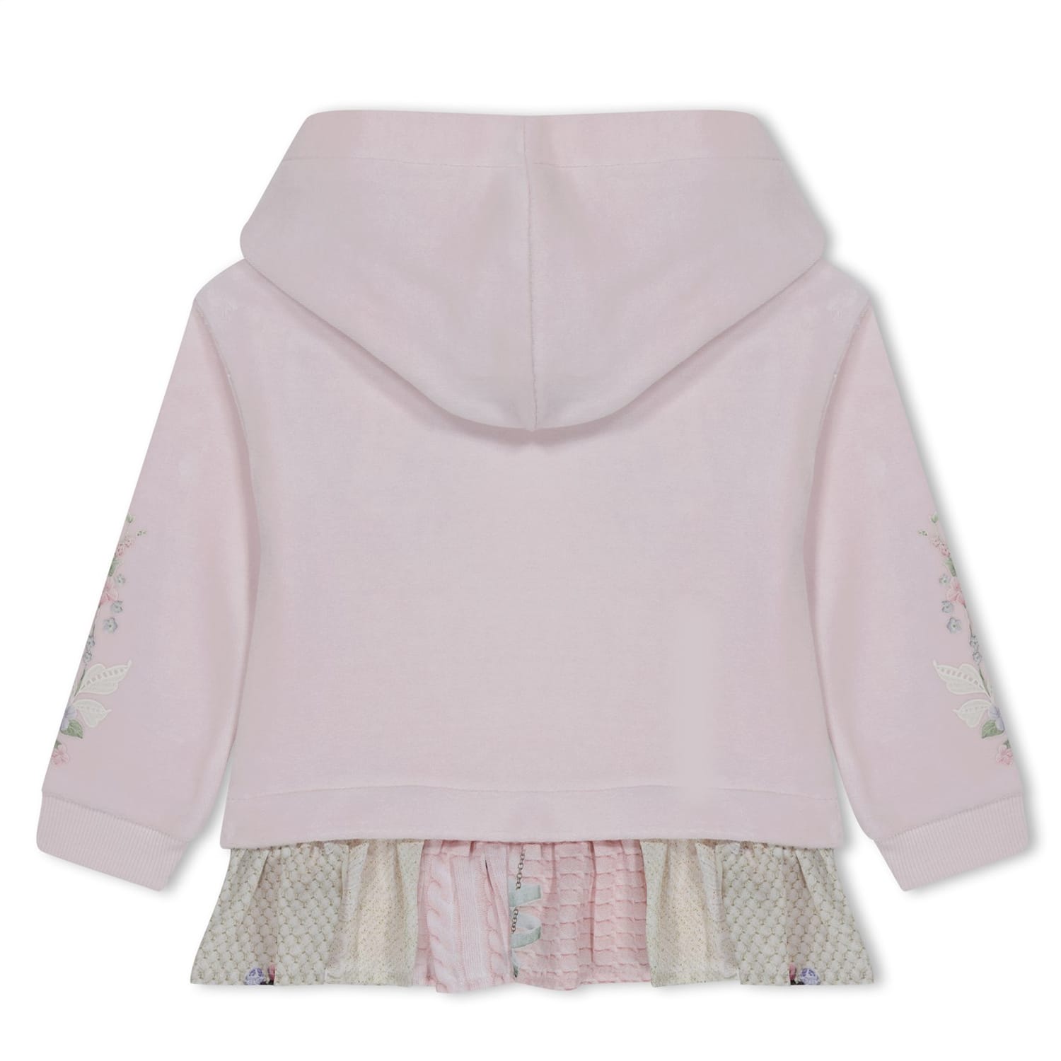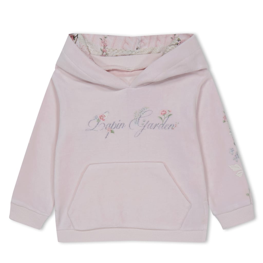 Discover the charming Lapin House top & pant set. This elegant outfit features a hooded sweatshirt with long plain sleeves and a legging. Adorned with applique, floral embroidery, and a logo, the hoodie showcases a delightful floral pattern, creating a perfect blend of style and comfort. -