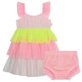 This Billieblush mini dress is a charming addition to any wardrobe. Featuring a tiered style, it showcases a delightful color block pattern. The dress is designed with ruffle embellishments, adding a playful touch to its overall look. Perfect for those who appreciate a blend of style and fun in their attire. -
