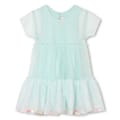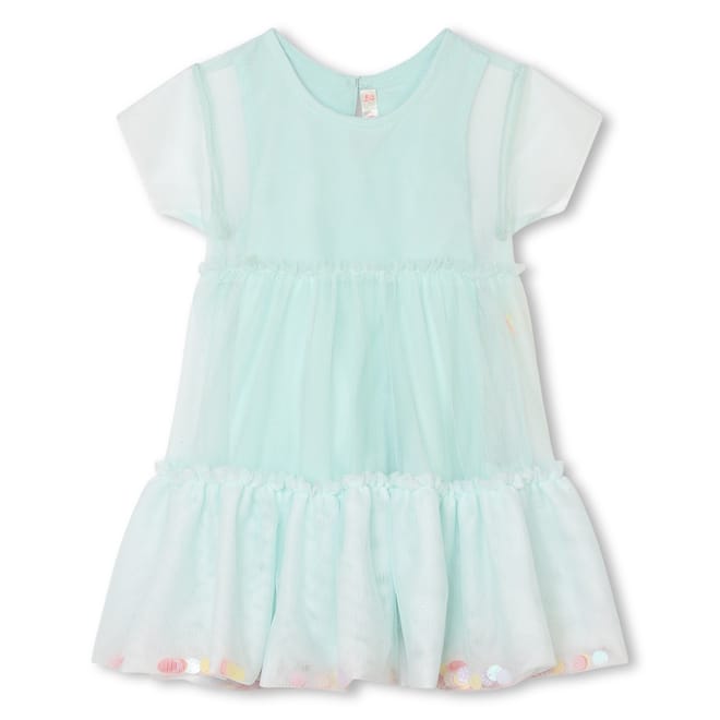 This Billieblush mini dress is a charming addition to any wardrobe. Featuring a solid pattern and crafted in an A-line style, it offers a classic crew neck and short sleeves. The dress is adorned with sequins, adding a touch of sparkle to its elegant design. Perfect for those who appreciate a blend of simplicity and flair. -